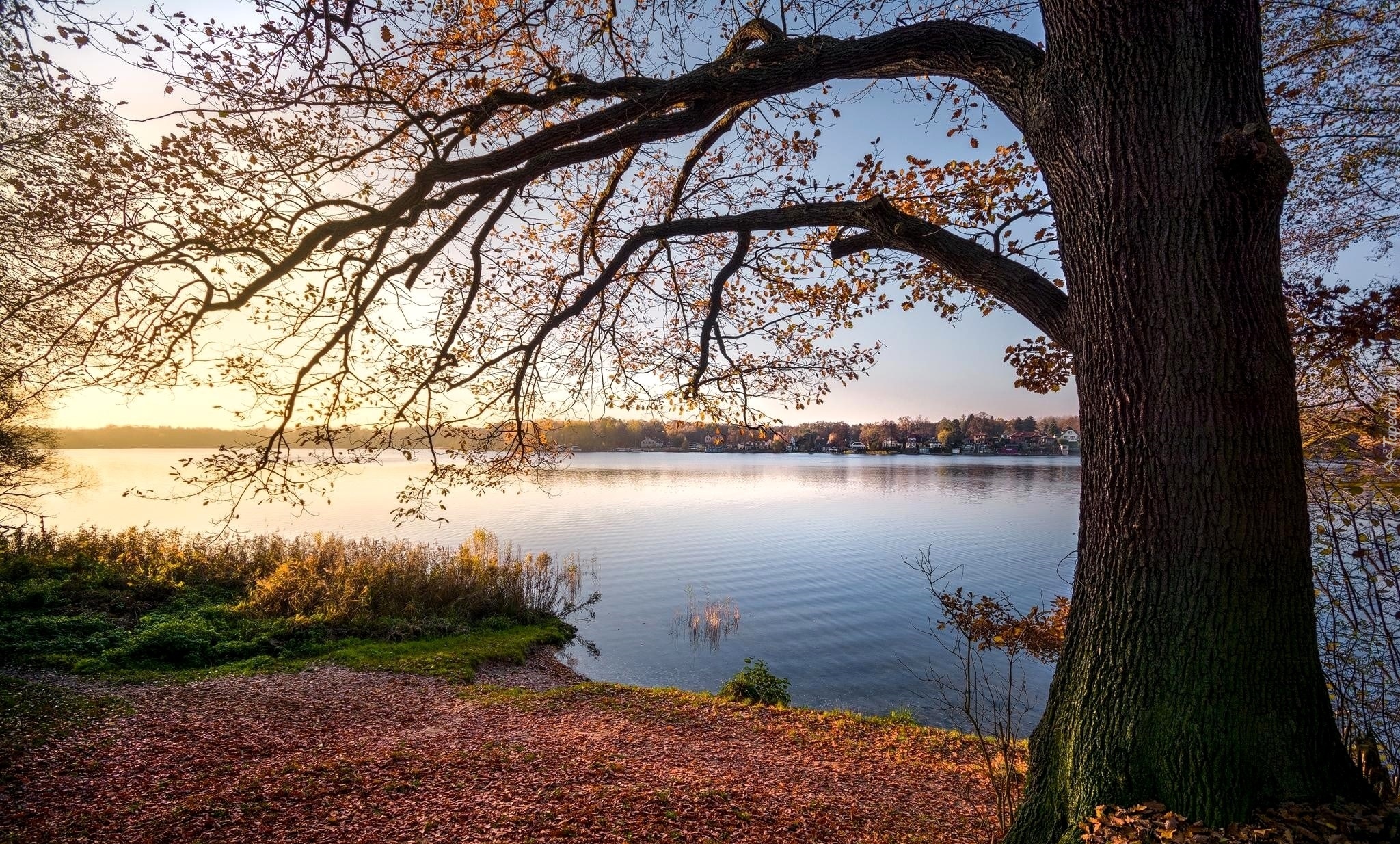 Edytor tapety: Pochylone gałęzie drzewa nad rzeką