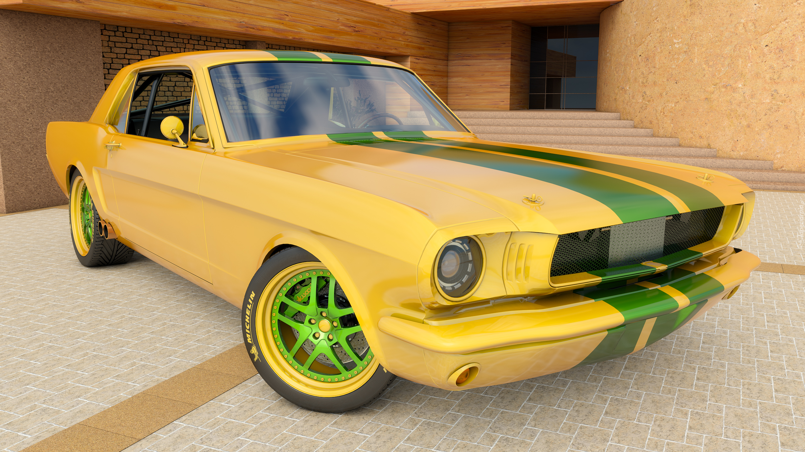 Edytor tapety: Zabytkowy Ford Mustang GT Coupe z 1965 roku
