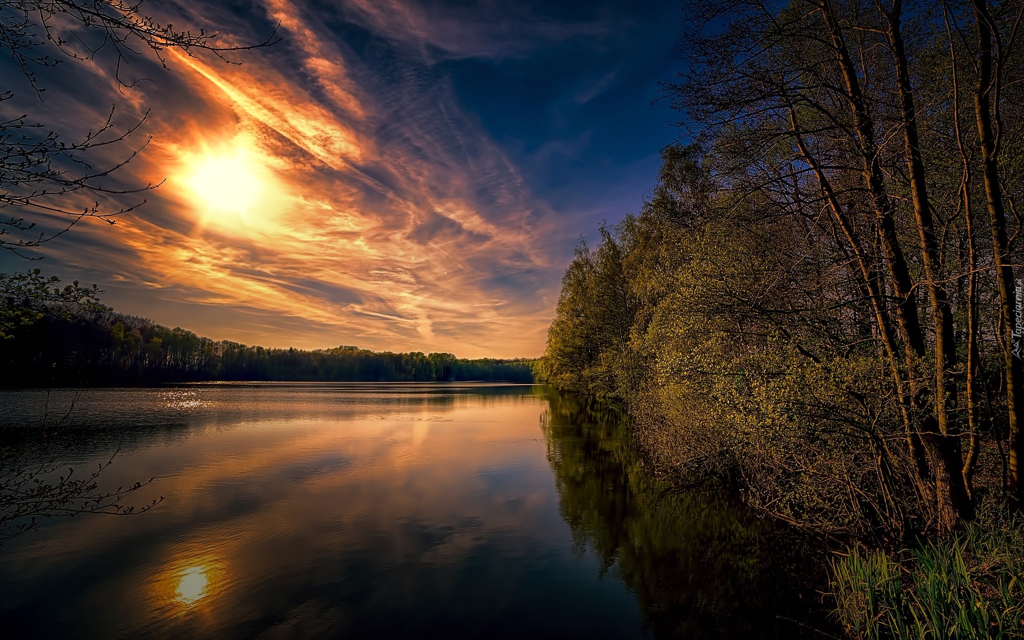 Edytor tapety: Zachodzące słońce nad jeziorem