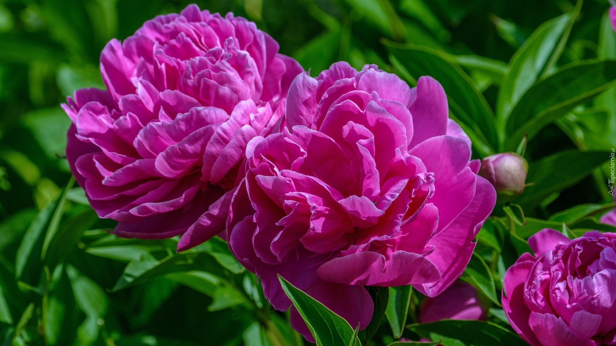 Edytor tapety: Rozwinięte różowe piwonie w słońcu