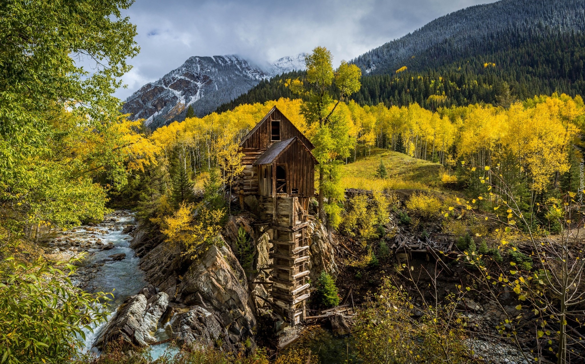 Edytor tapety: Młyn Crystal Mill w Kolorado jesienną porą