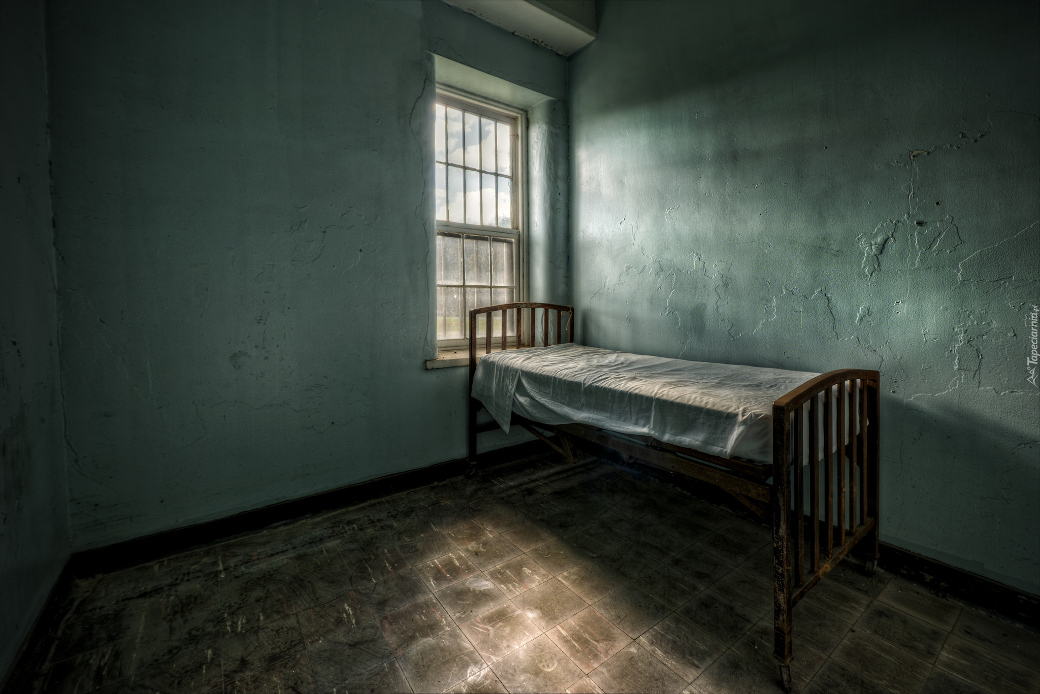 Edytor tapety: Łóżko pod oknem w zaniedbanym pokoju