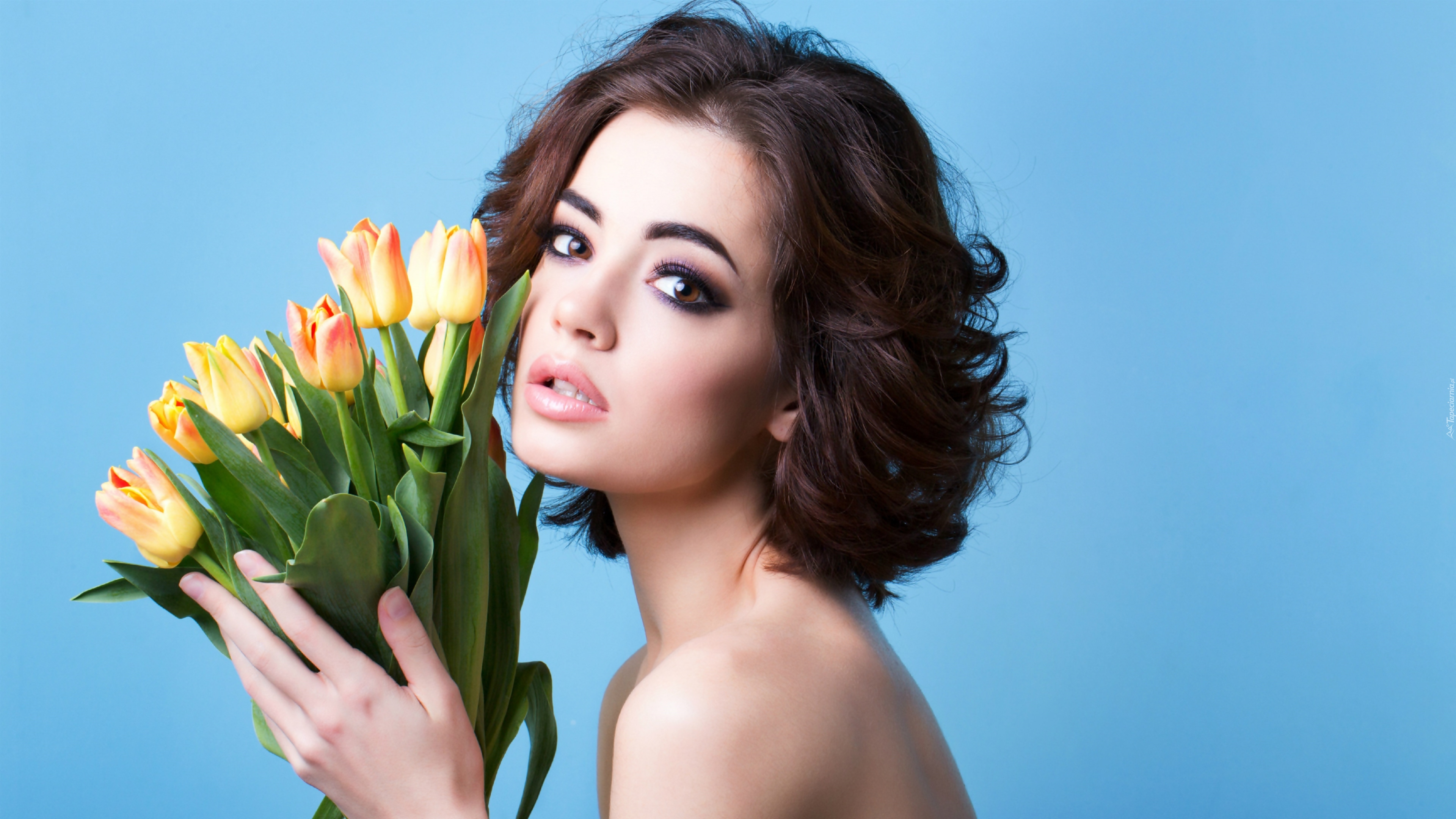 Edytor tapety: Dziewczyna z bukietem tulipanów