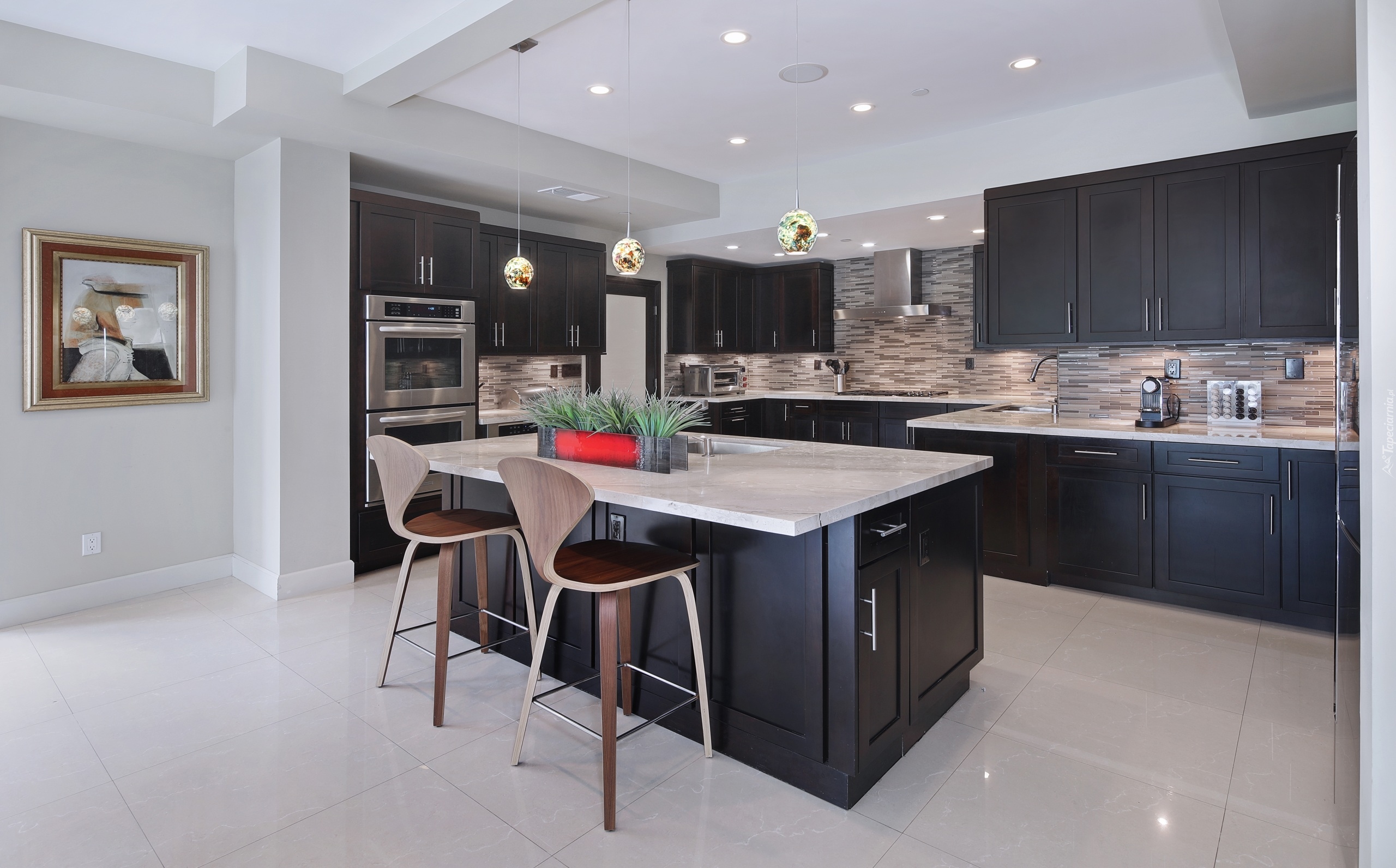 Edytor tapety: Jasna kuchnia z ciemnymi meblami