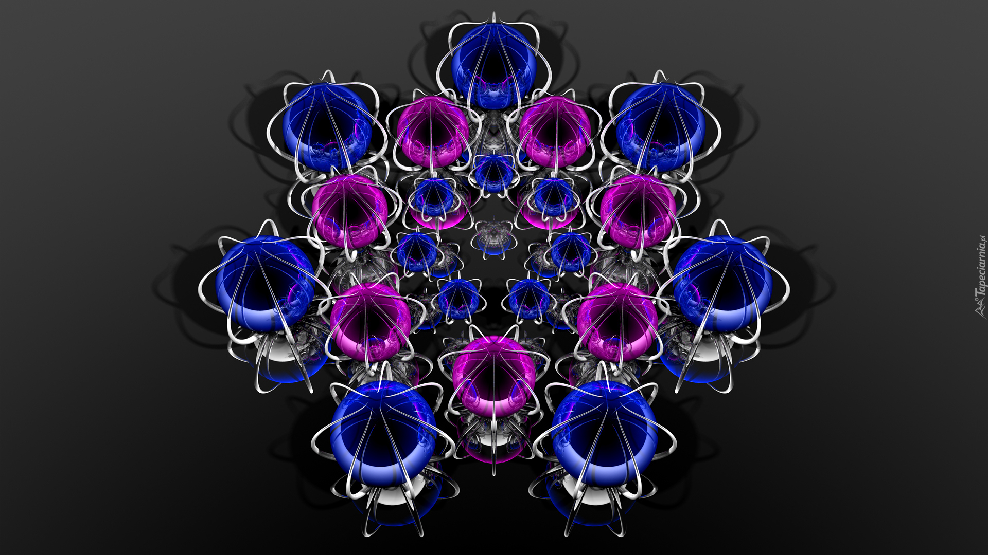 Edytor tapety: Niebieskie i różowe okrągłe obiekty w grafice 3D