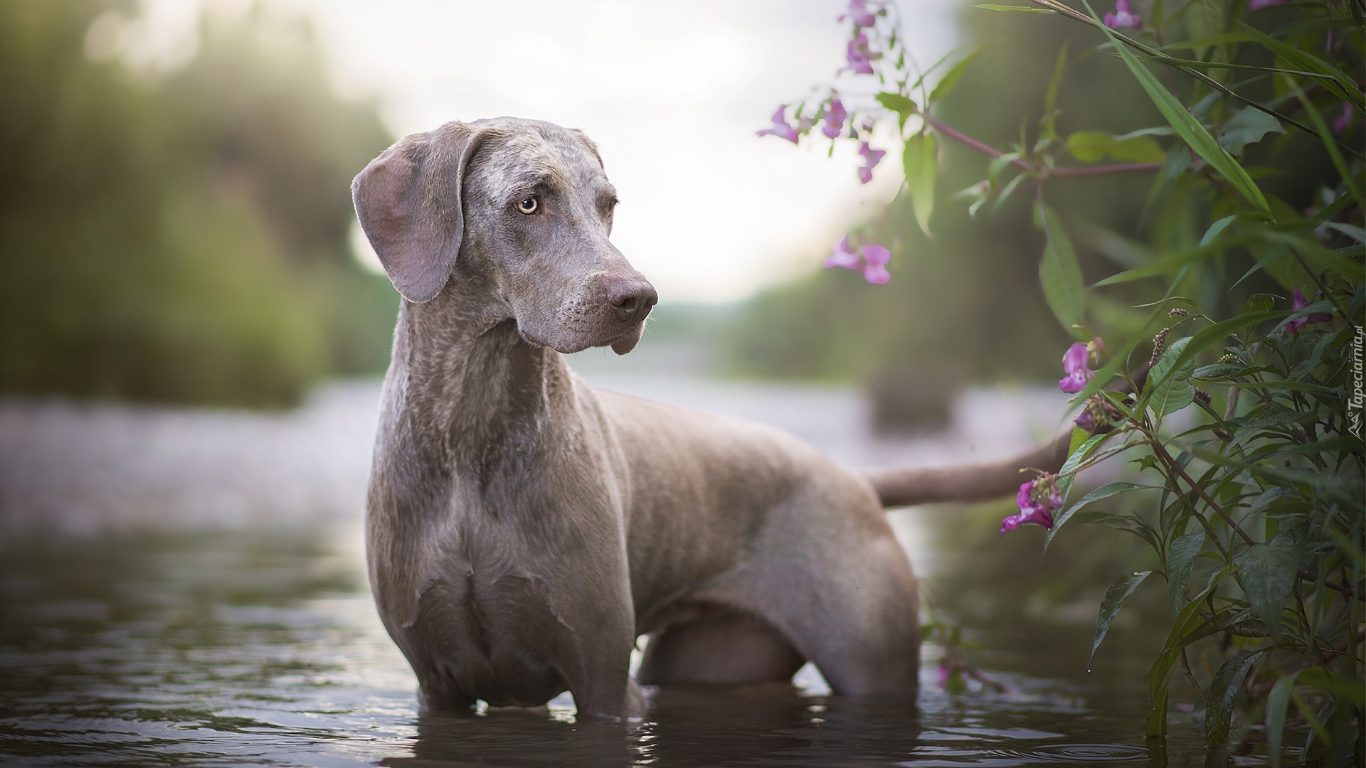 Edytor tapety: Wyżeł weimarski krótkowłosy w wodzie
