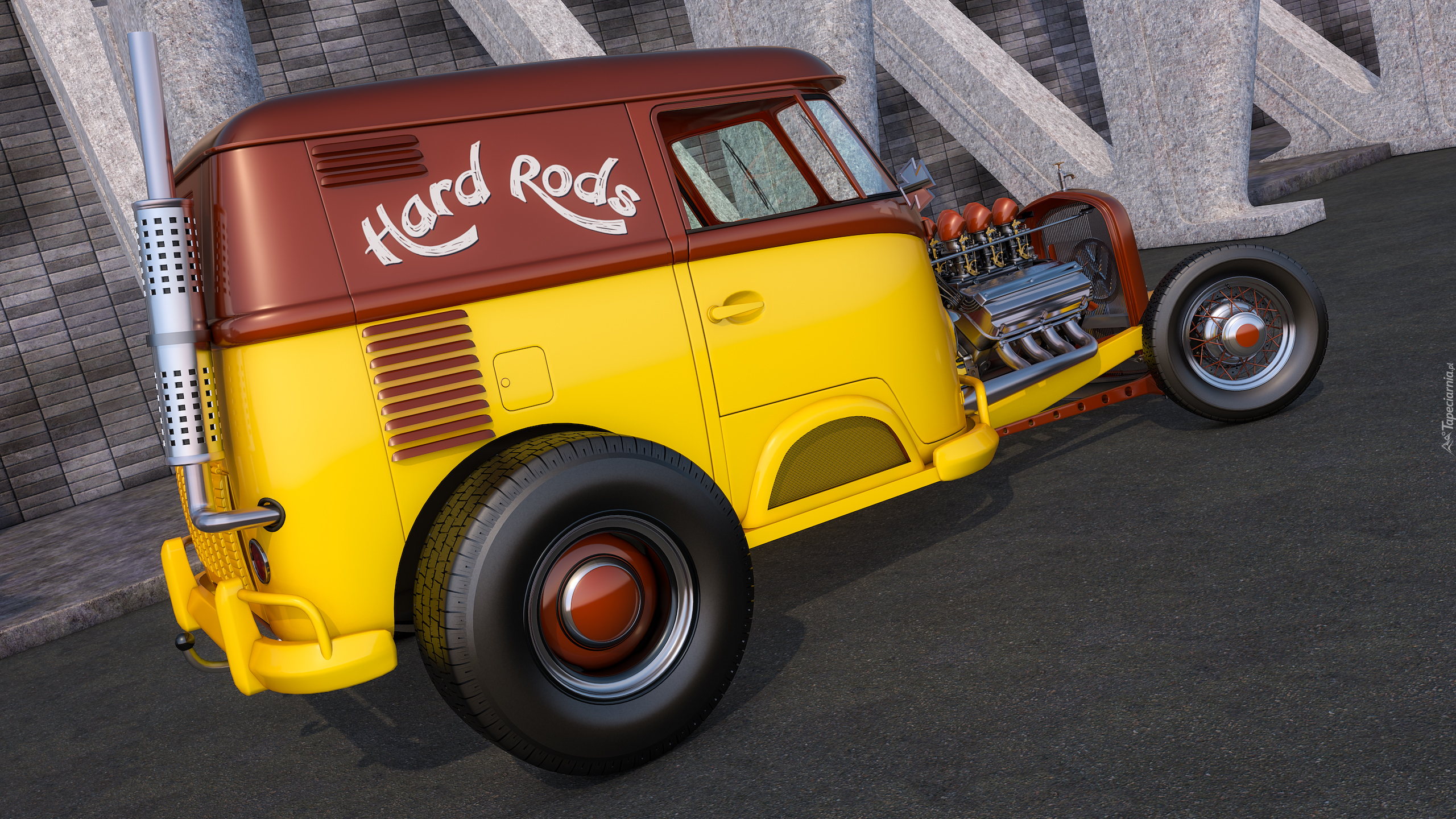 Edytor tapety: Zabytkowy Volkswagen T1 Rod z 1950 roku