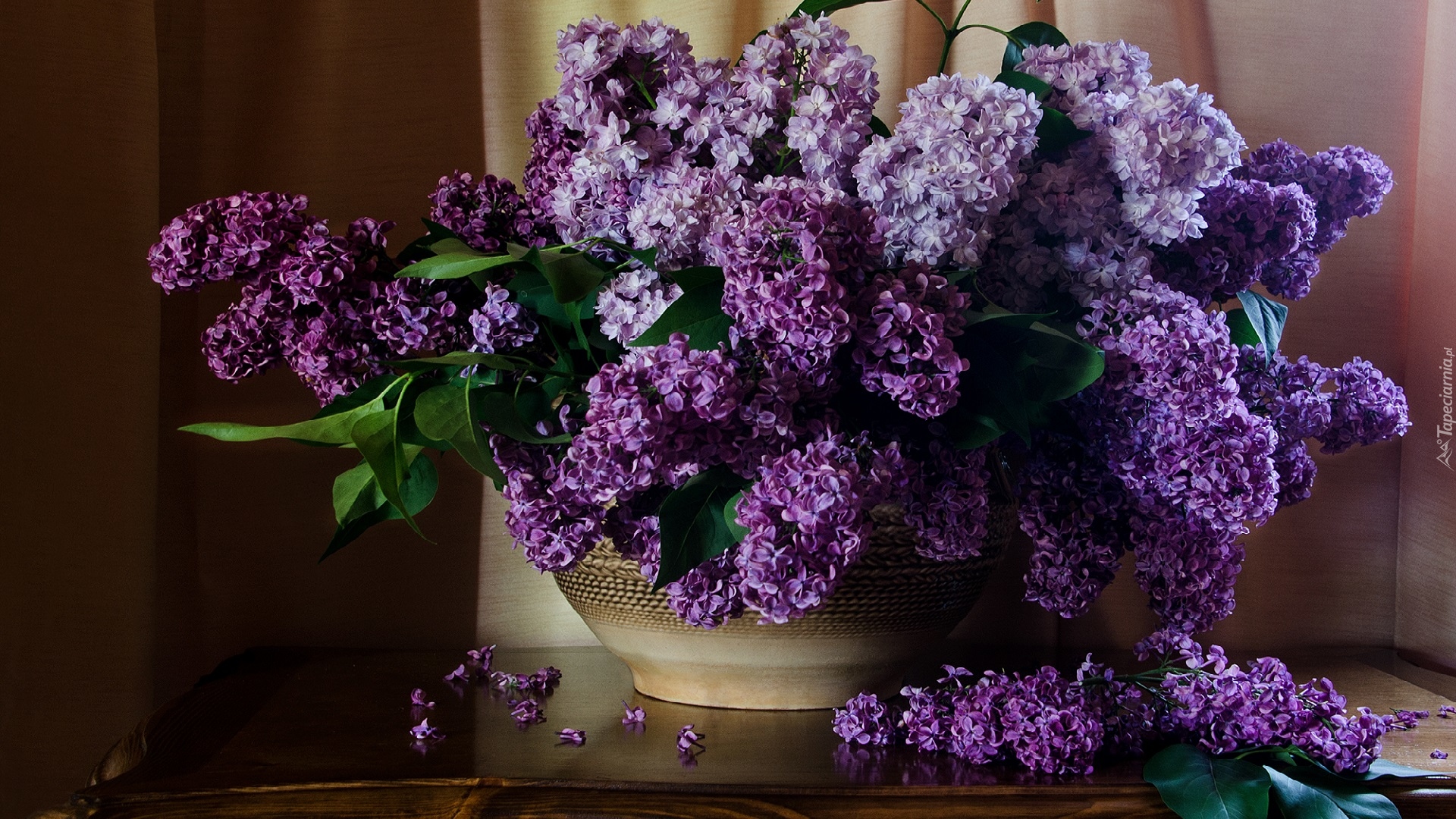 Edytor tapety: Fioletowy bez w glinianej misie