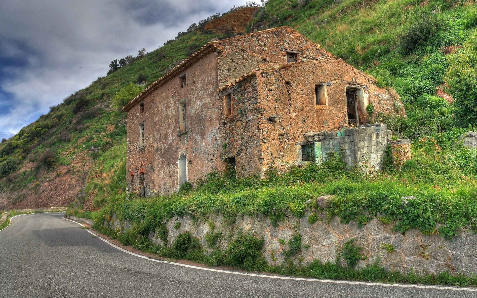 Edytor tapety: Opuszczony dom na wzgórzu przy drodze