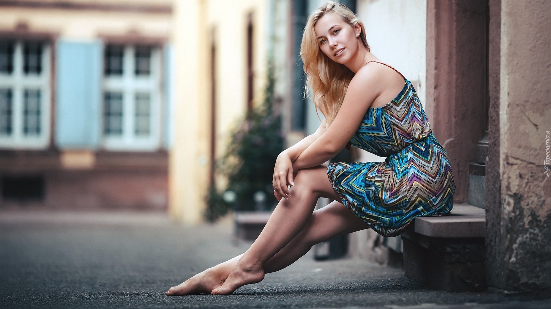 Edytor tapety: Bosonoga dziewczyna w letniej sukience