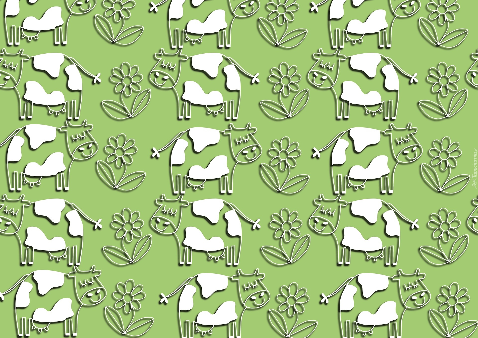 Edytor tapety: Zielona tekstura w kwiatki i łaciate krowy
