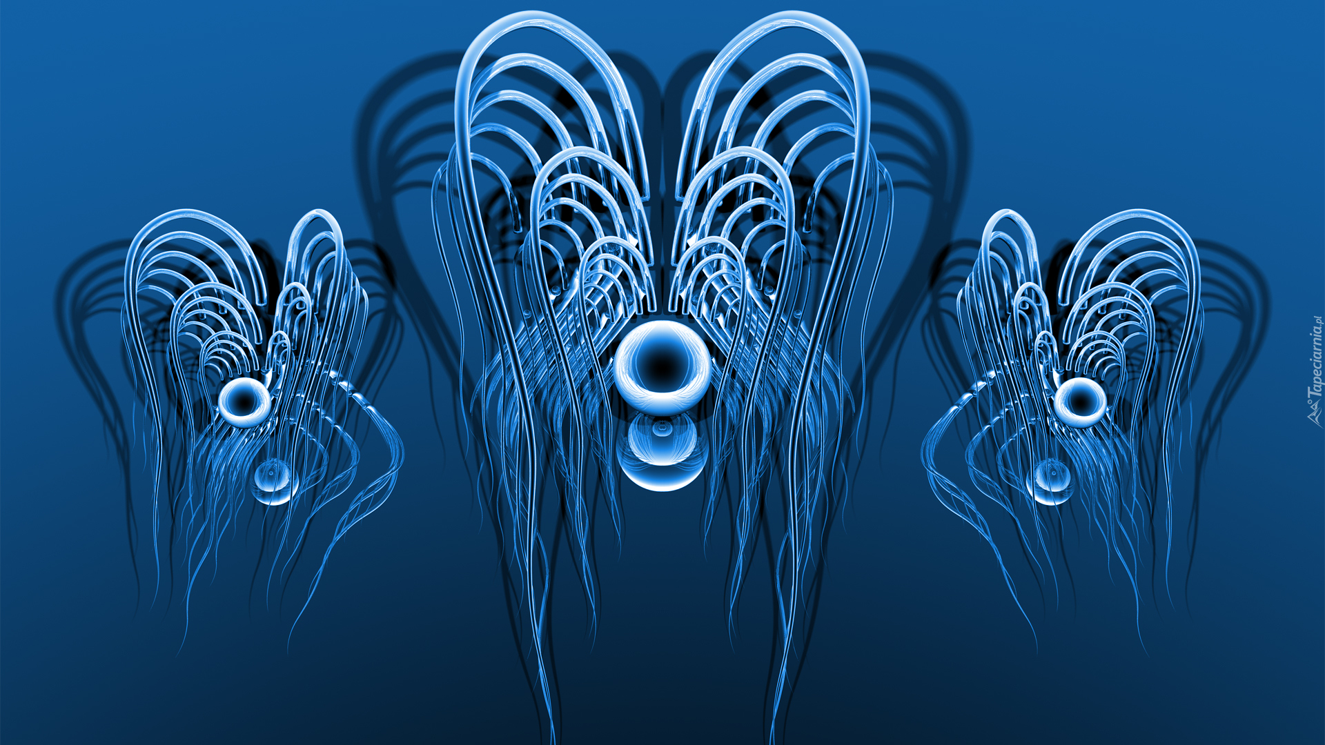 Edytor tapety: Graficzne obiekty na niebieskim tle w 3D