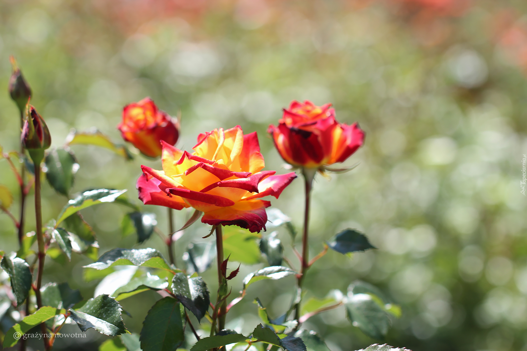 Edytor tapety: Herbaciane róże na rozmytym tle