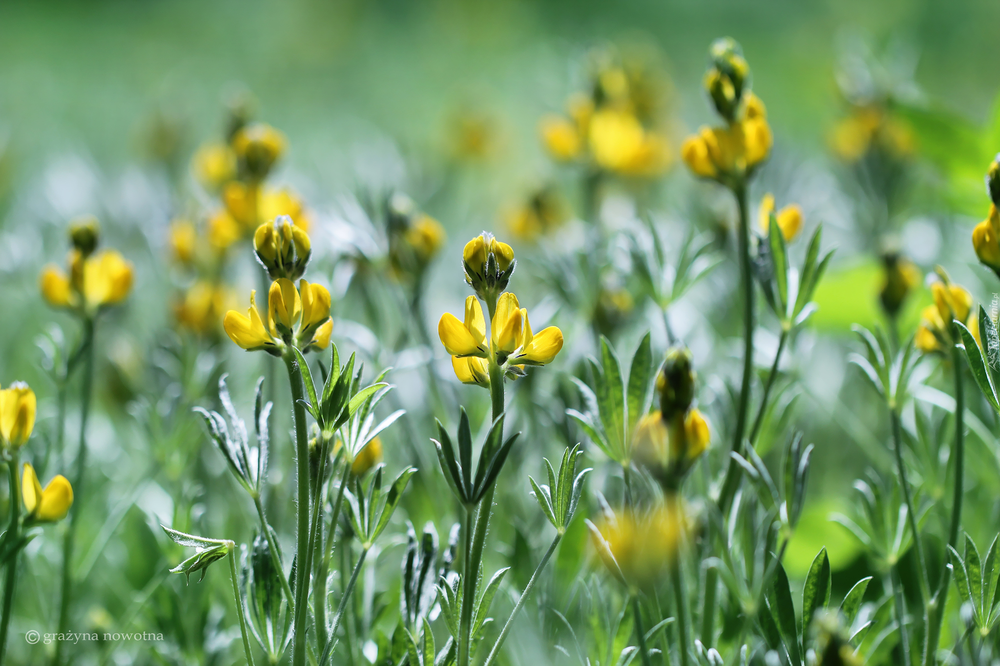 Edytor tapety: Żółte rozkwitające kwiaty w rozmyciu