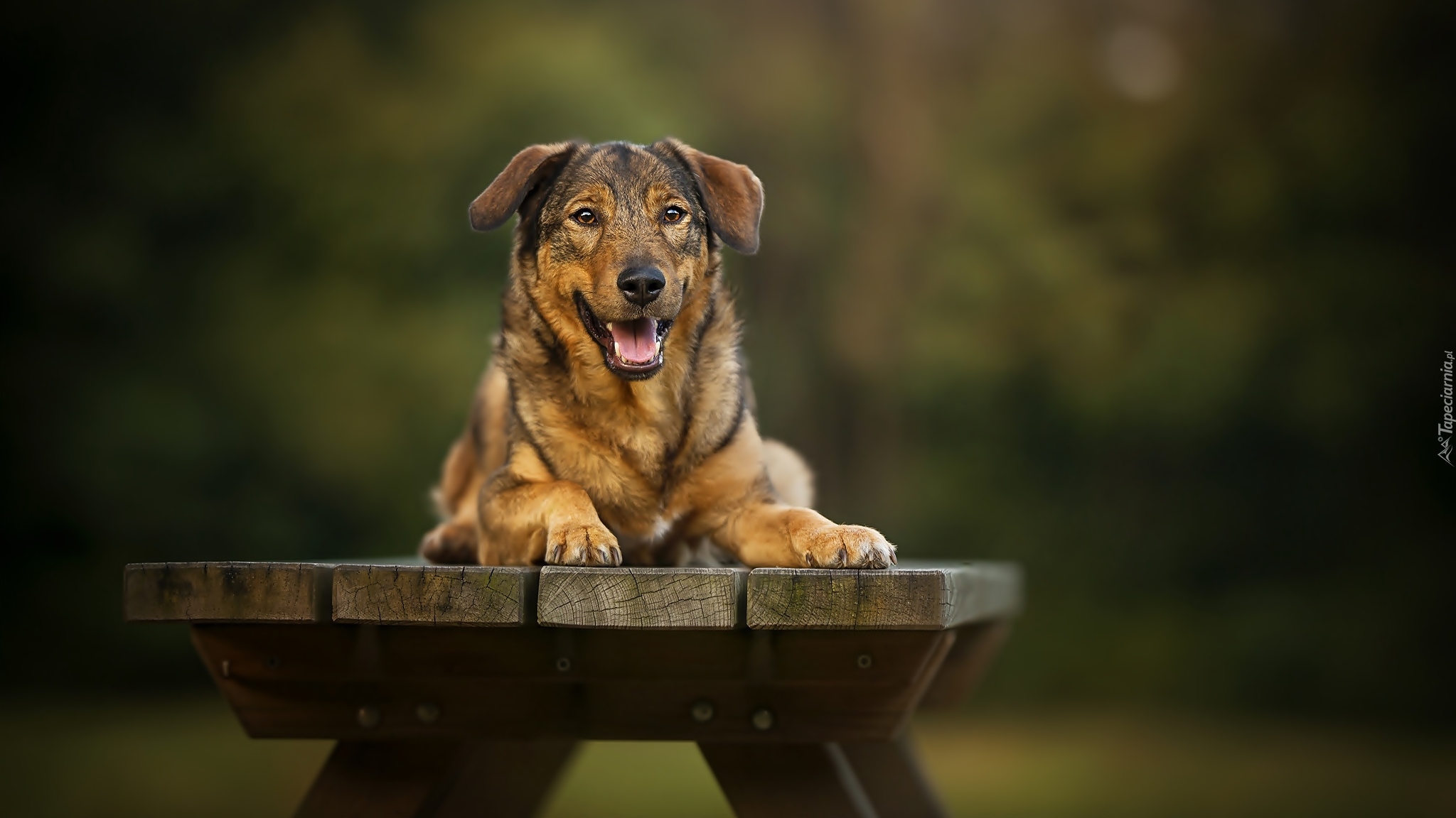 Edytor tapety: Radosny kundelek na ławce