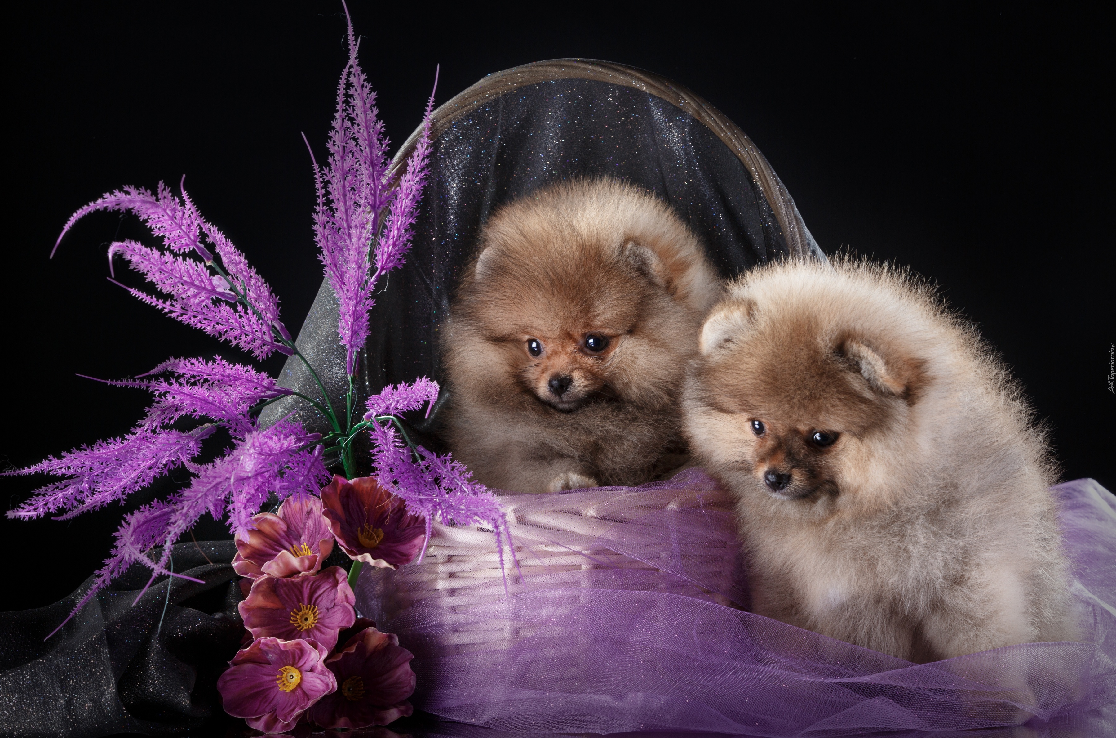 Edytor tapety: Dwa puszyste szczeniaki szpica