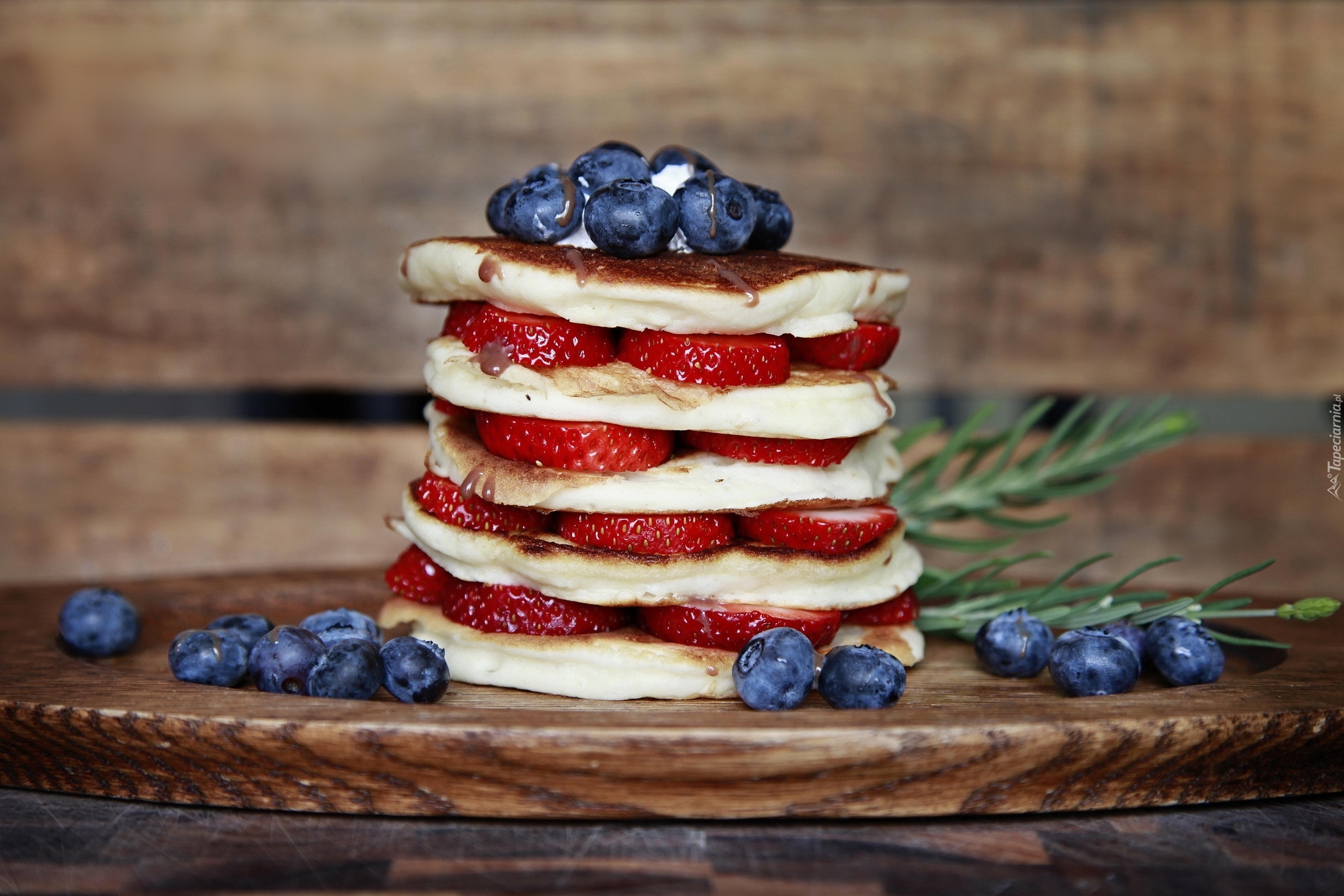 Edytor tapety: Naleśniki z truskawkami dekorowane borówkami
