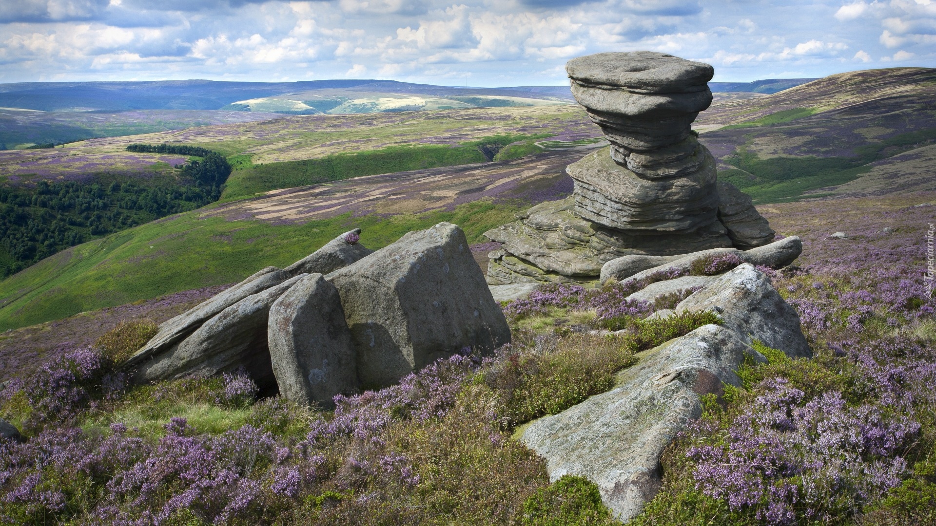 Edytor tapety: Kamienie na wzgórzu porośniętym kwiatami