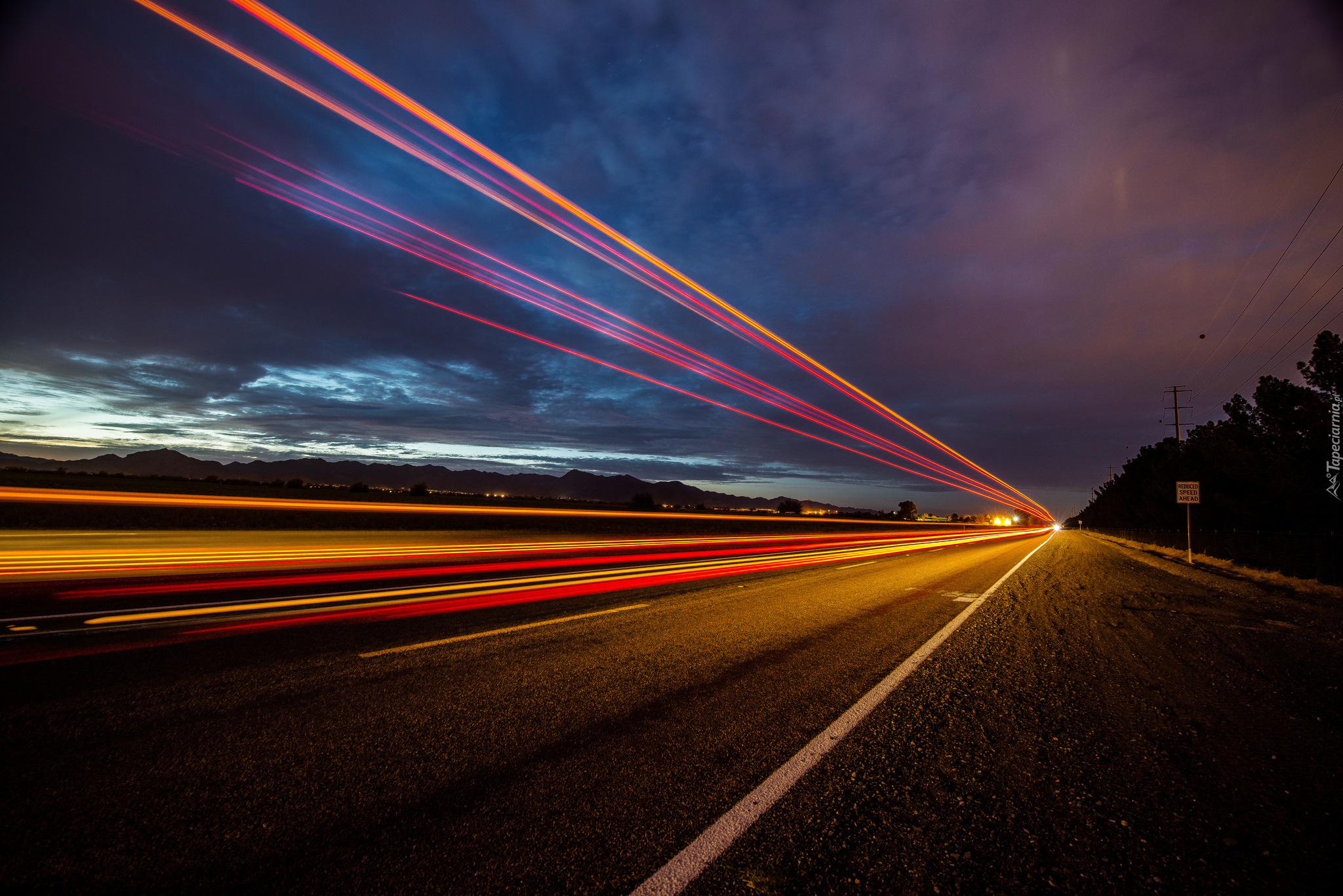 Edytor tapety: Ekspozycja świateł nad asfaltową drogą