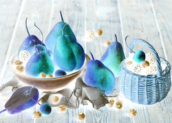 Edytor tapety: Owocowa kompozycja z miską gruszek i jeżyn w koszyczku
