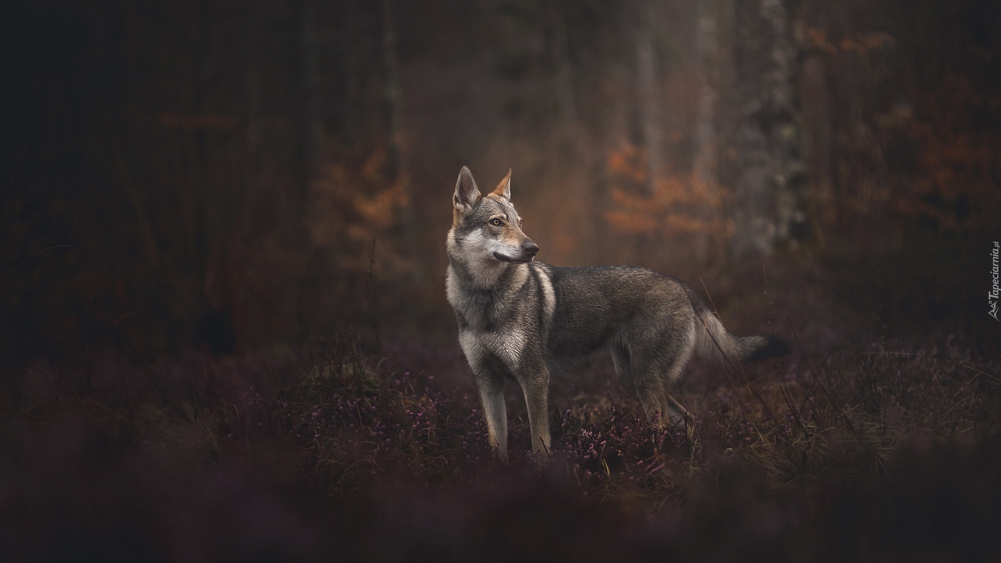 Edytor tapety: Wilczak czechosłowacki na leśnej polanie