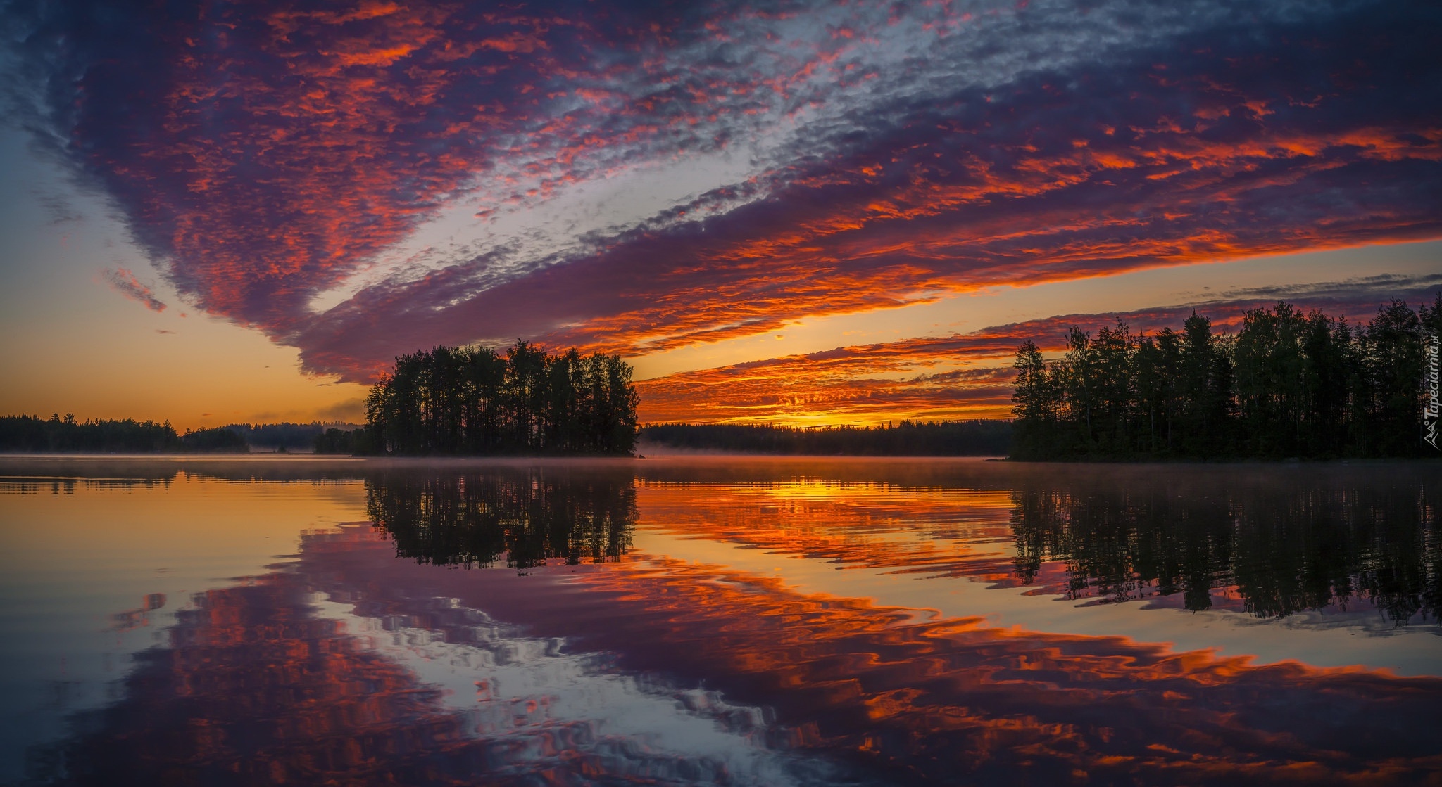 Edytor tapety: Niebo przegląda się w jeziorze o zachodzie słońca