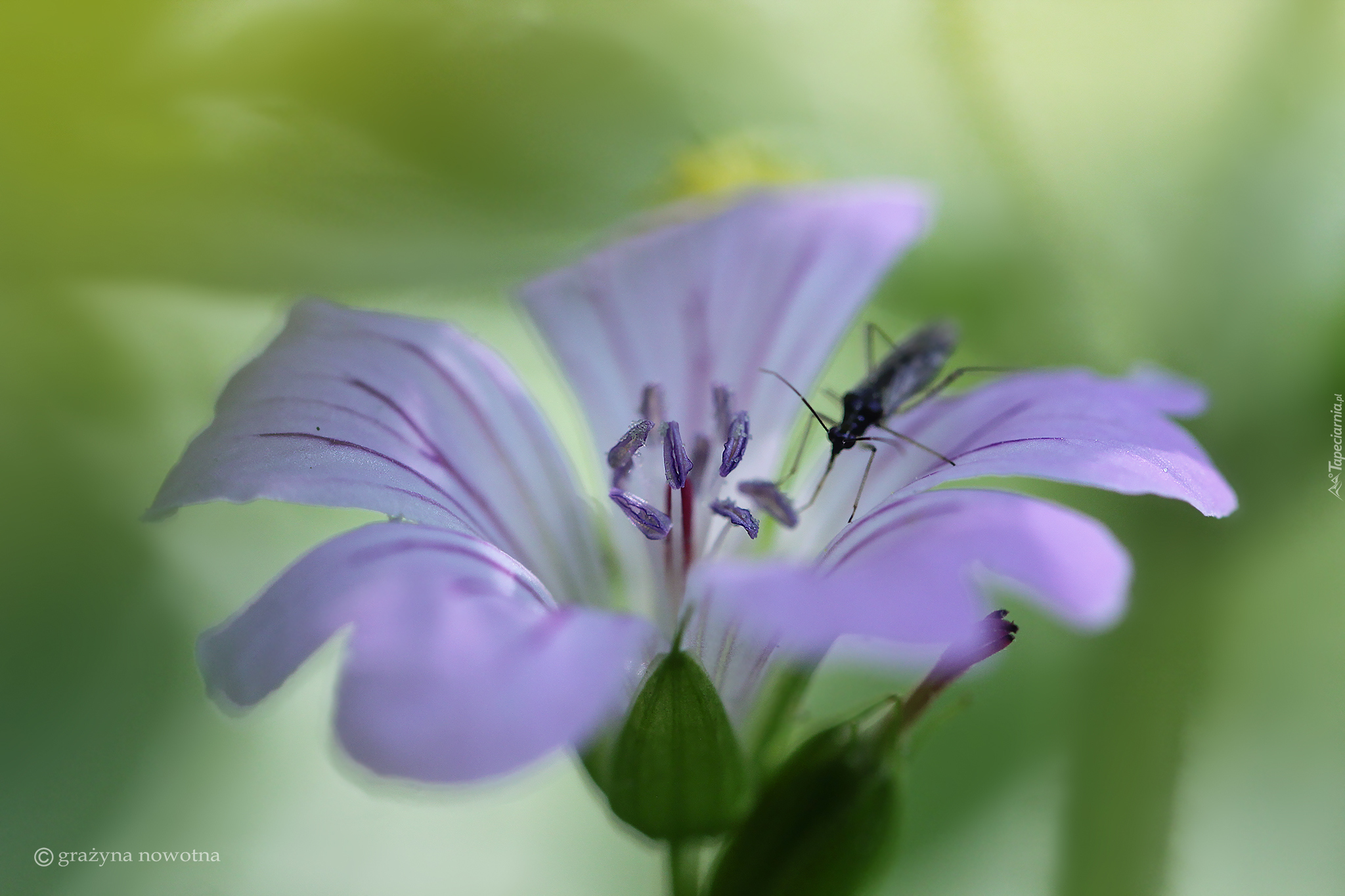 Edytor tapety: Owad przysiadł na płatku fioletowego bodziszka