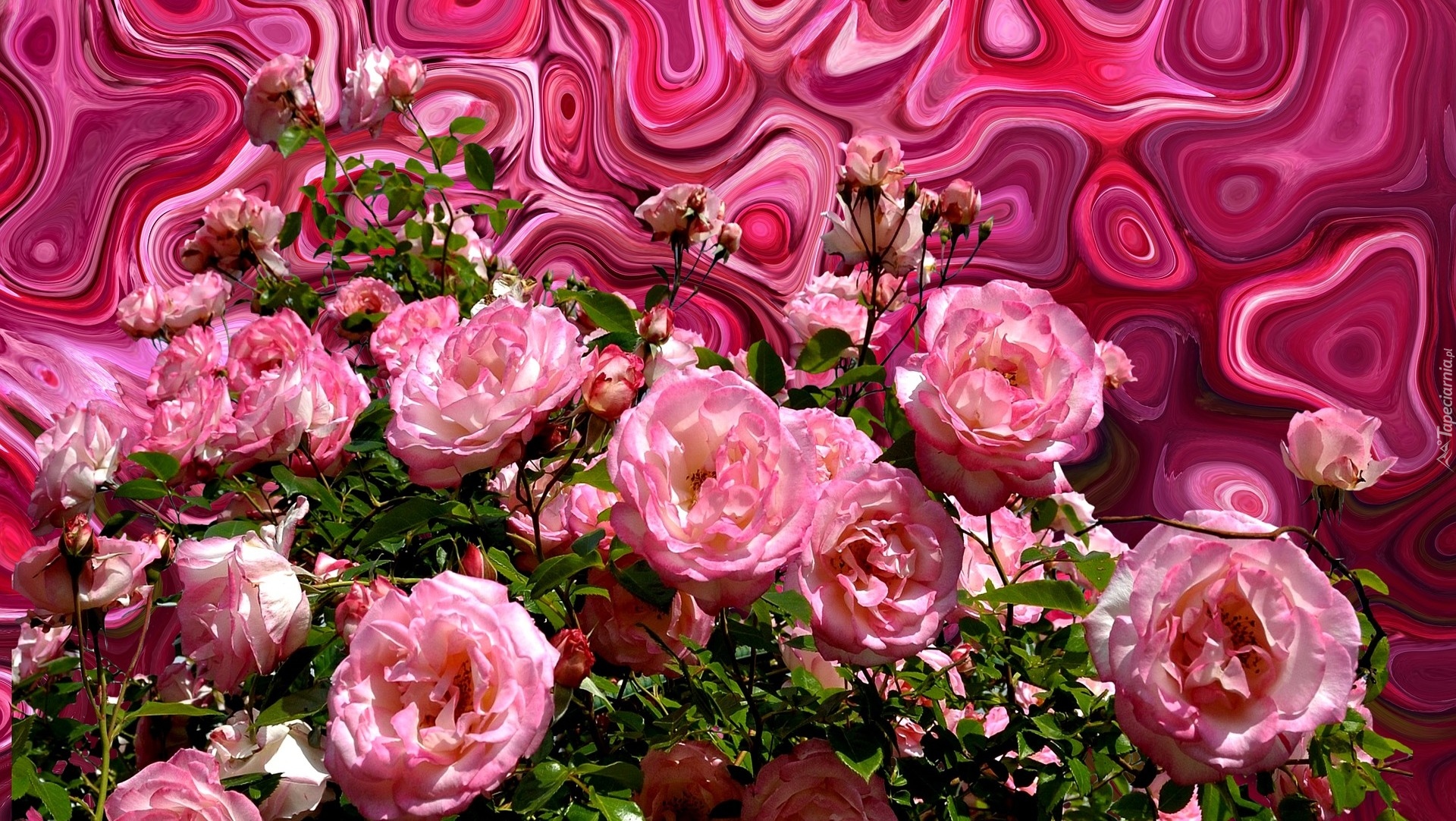 Edytor tapety: Różowe róże na graficznym tle