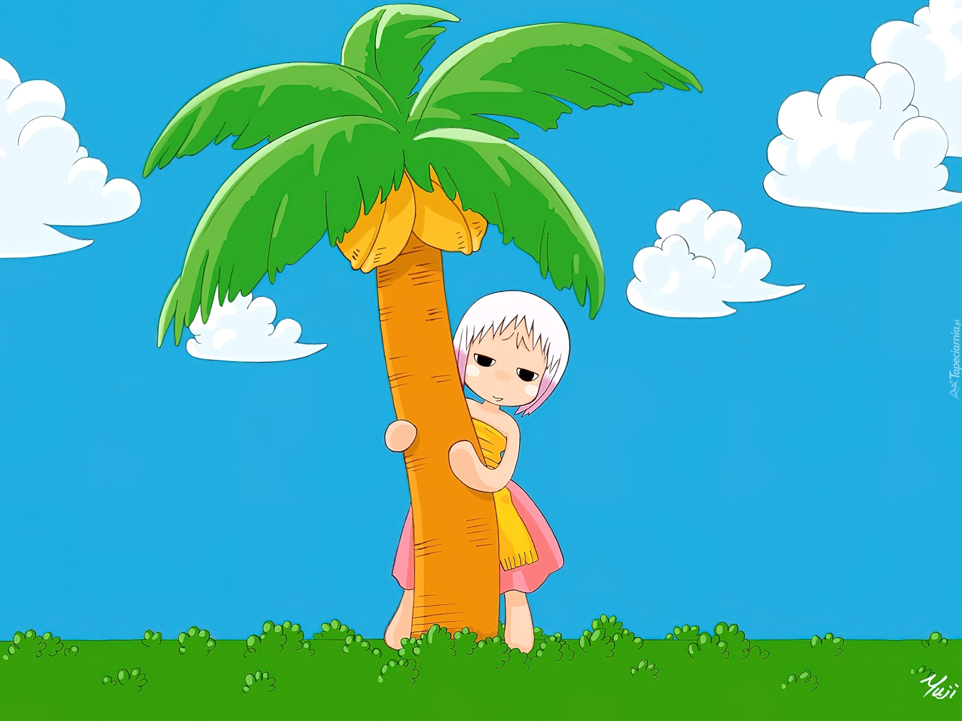 Edytor tapety: Jungle Wa Itsumo Hale Nochi Guu, palma, dziecko