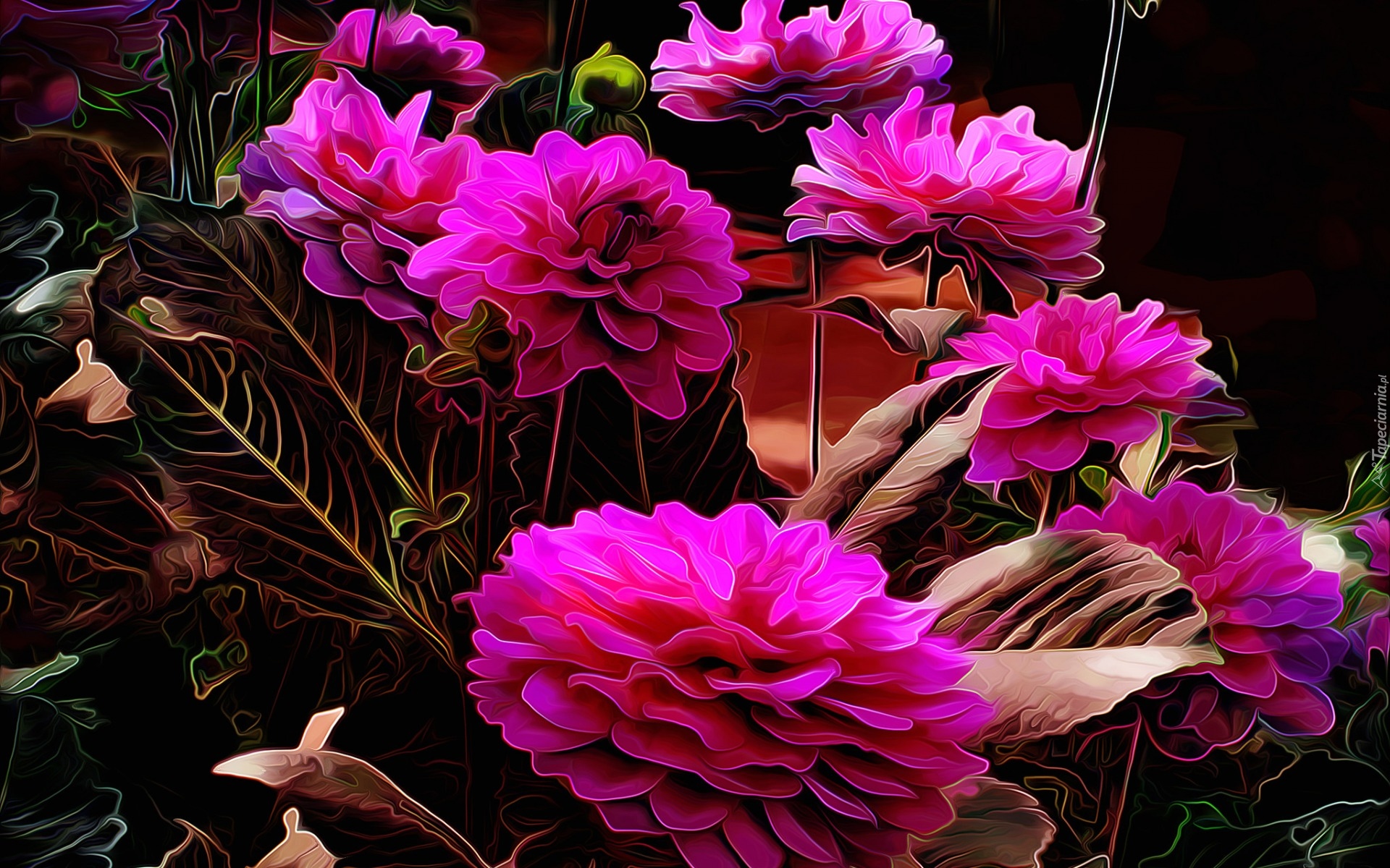 Edytor tapety: Różowe kwiaty w grafice fractalius