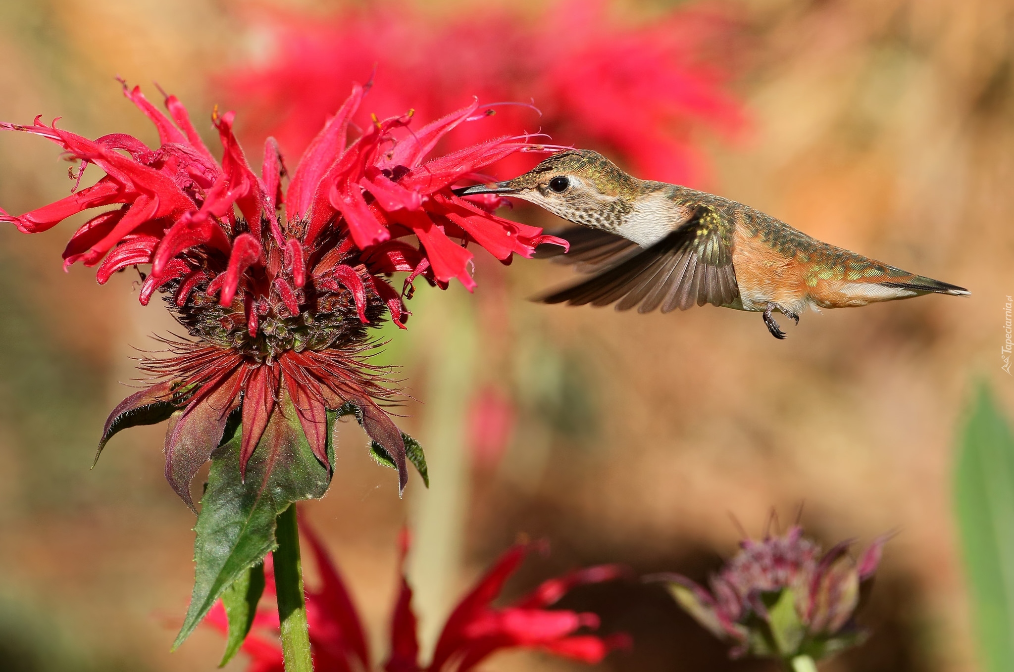 Edytor tapety: Koliber spija nektar z czerwonego kwiatka