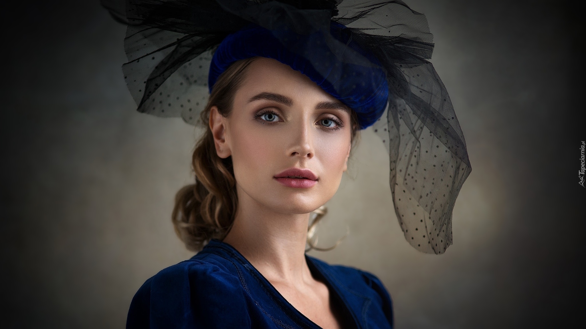 Edytor tapety: Kobieta w kapeluszu z czarną woalką