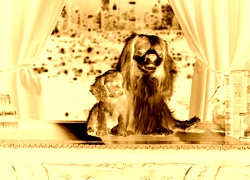 Edytor tapety: Cavalier king charles spaniel i cocker spaniel angielski na parapecie