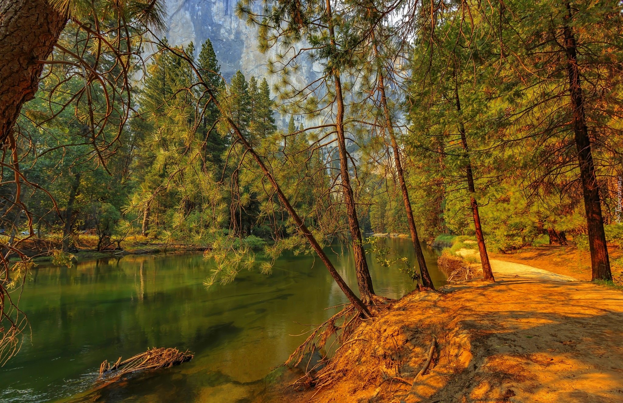 Edytor tapety: Leśna ścieżka z widokiem na rzekę