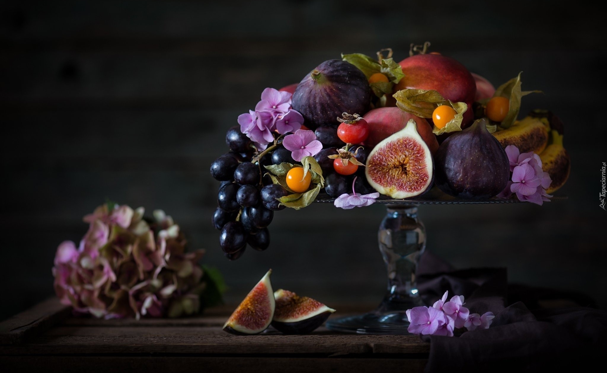 Edytor tapety: Owoce i kwiaty na paterze