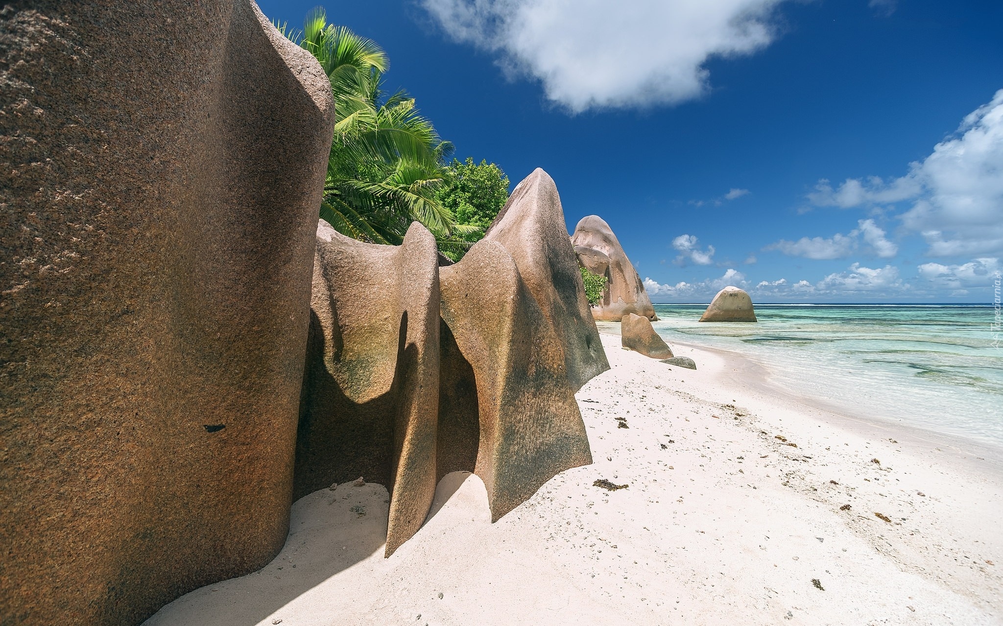 Edytor tapety: Skały i palmy na wyspie La Digue