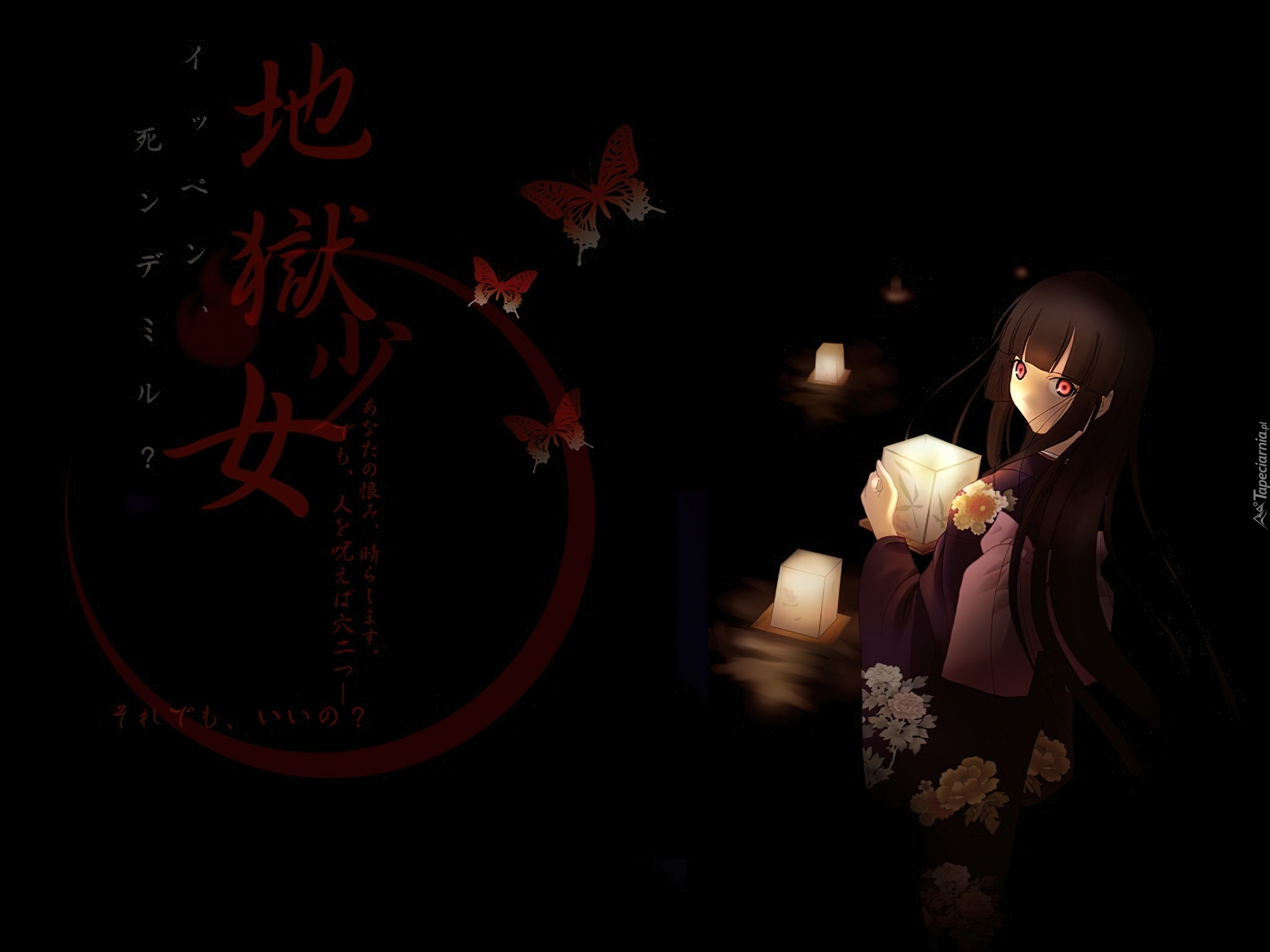 Edytor tapety: Jigoku Shoujo, świece, kobieta, znaki