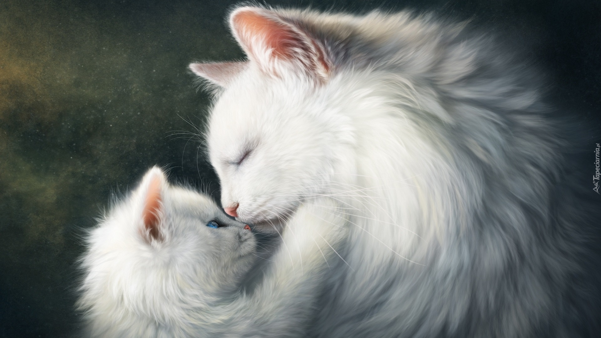 Edytor tapety: Dwa przytulone do siebie koty w grafice painthography