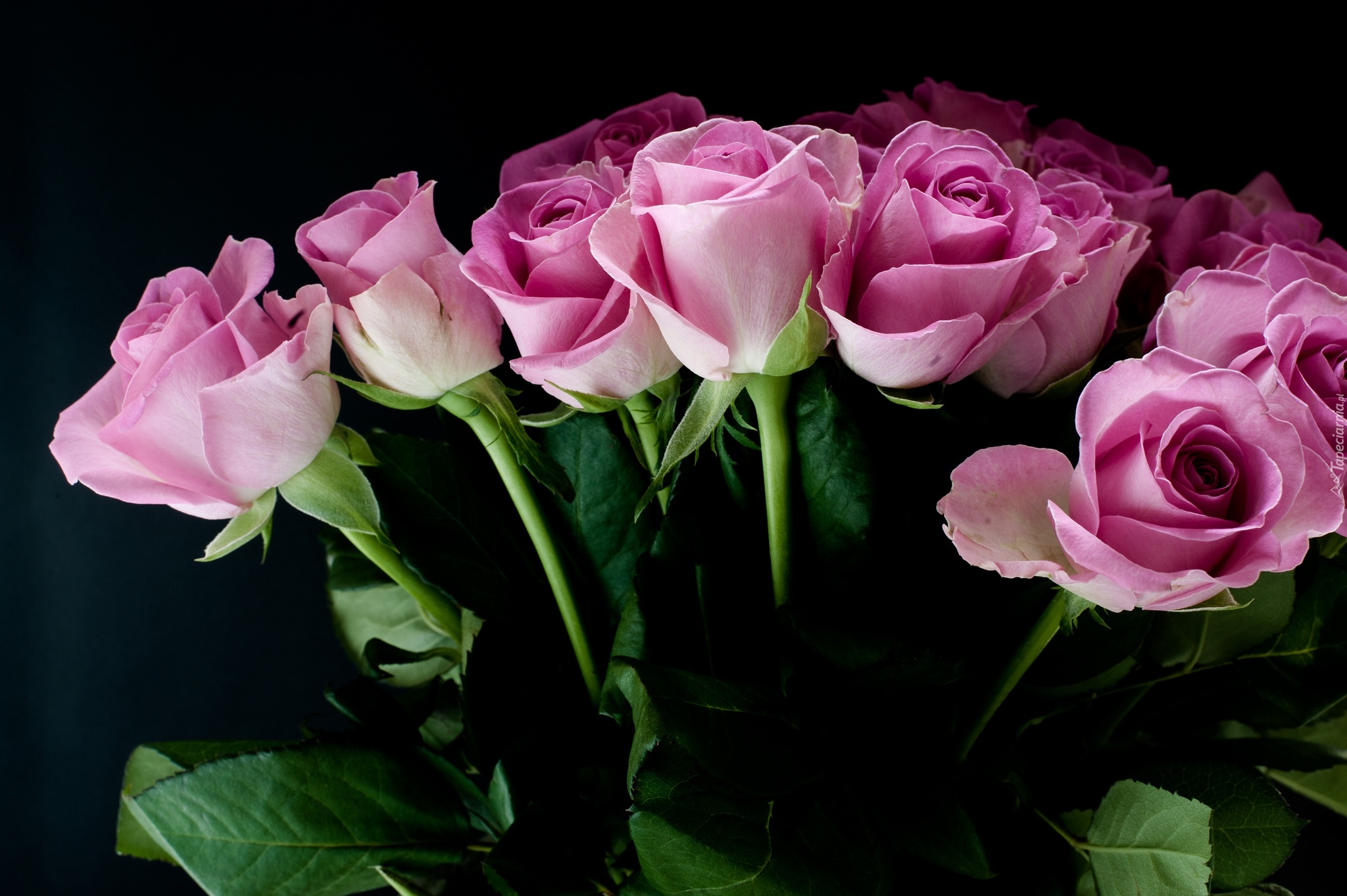 Edytor tapety: Bukiet różowych róż na czarnym tle