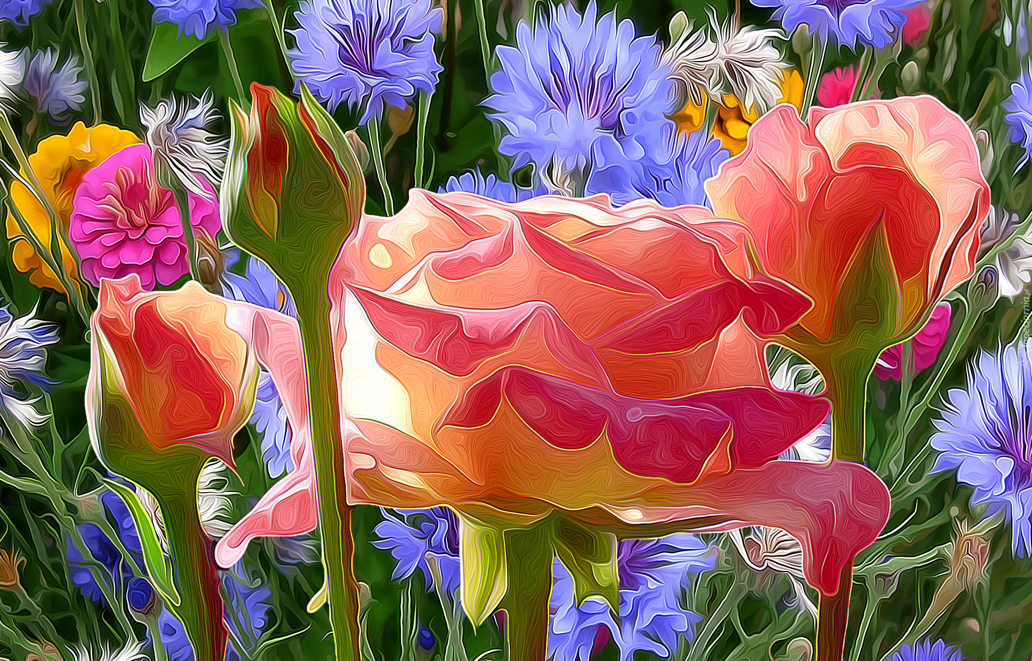 Edytor tapety: Kolorowe kwiaty w grafice fractalius