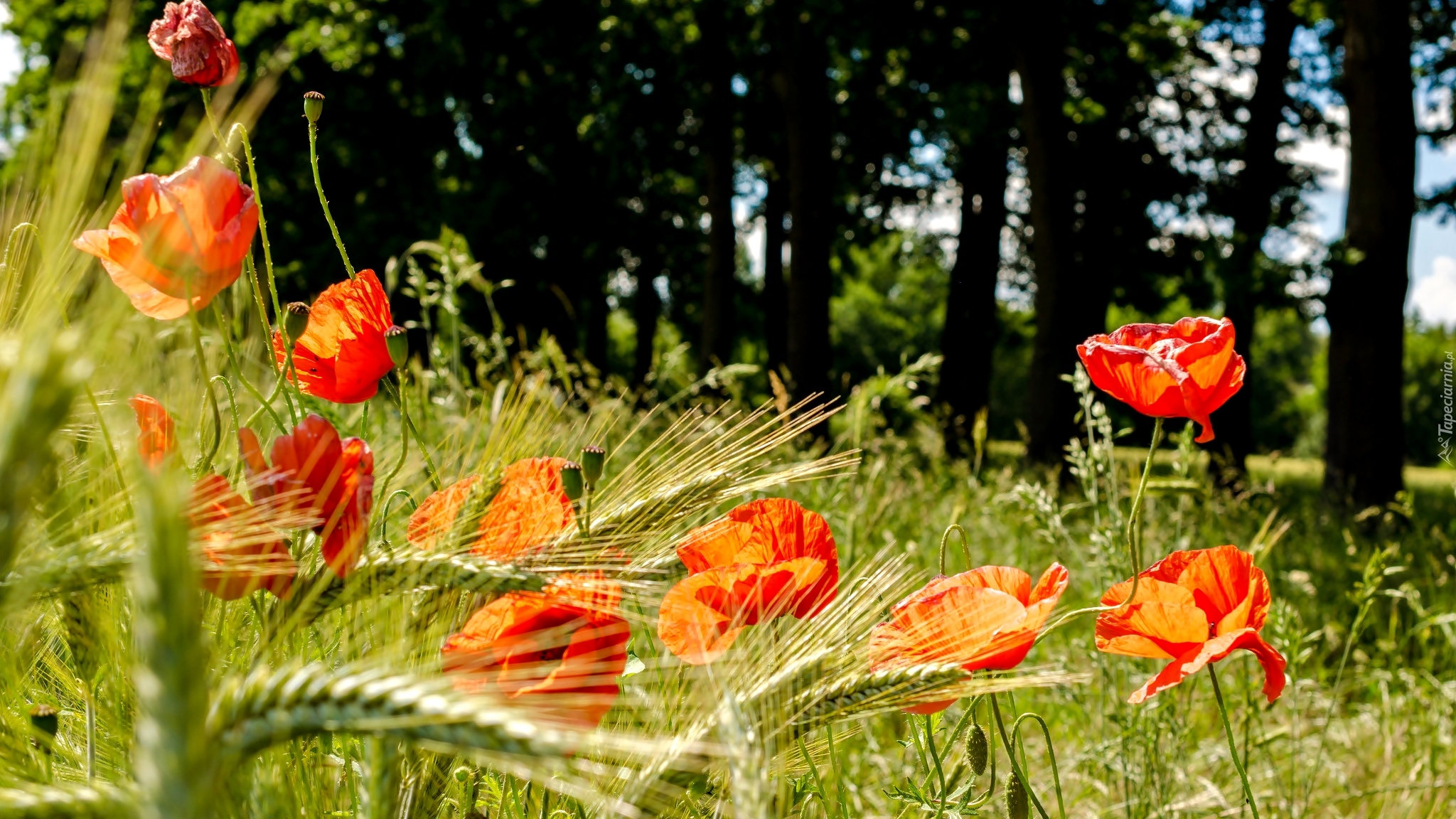 Edytor tapety: Polne maki w zbożu