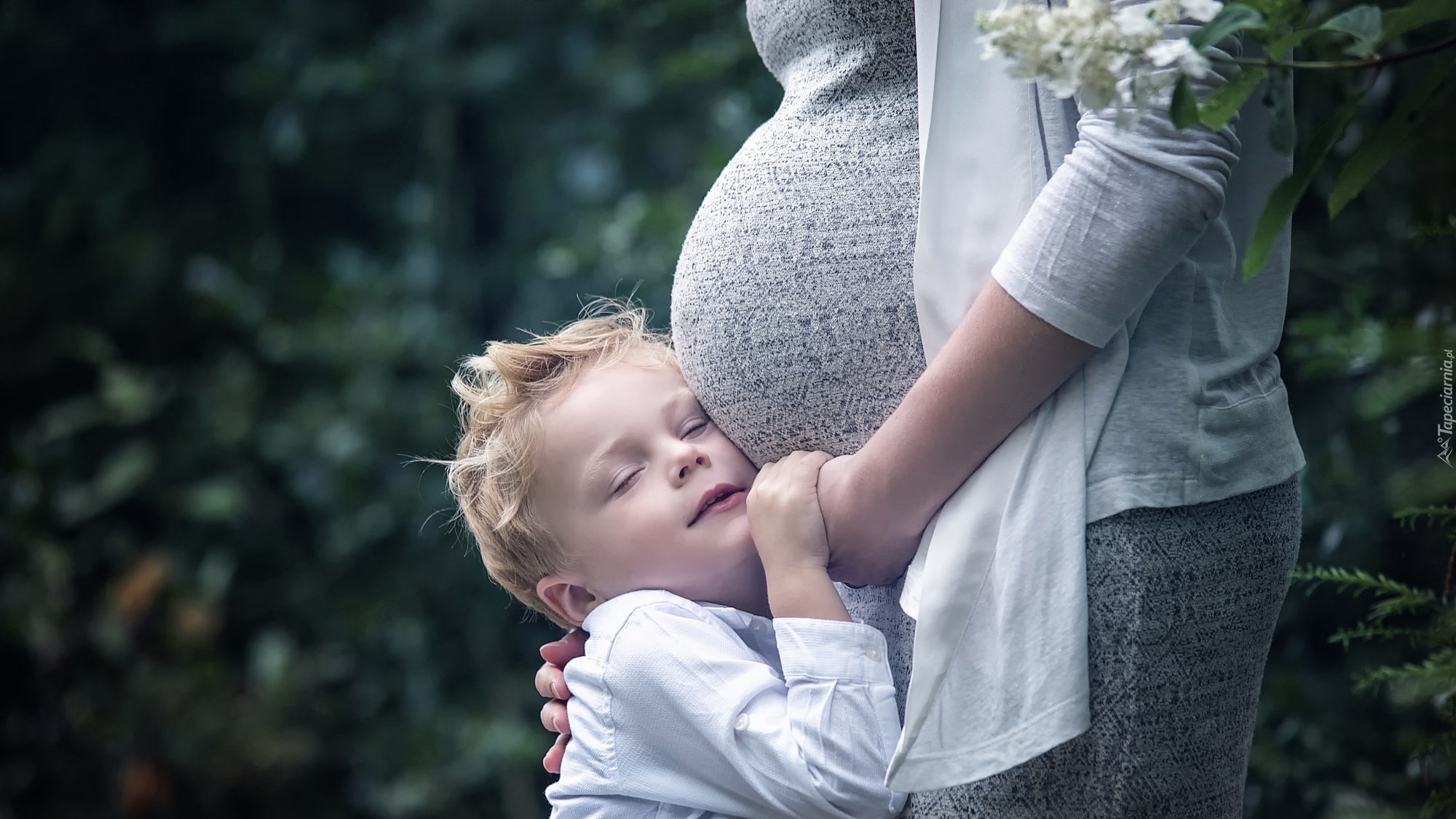 Edytor tapety: Kobieta w ciąży i chłopiec przytulony do niej