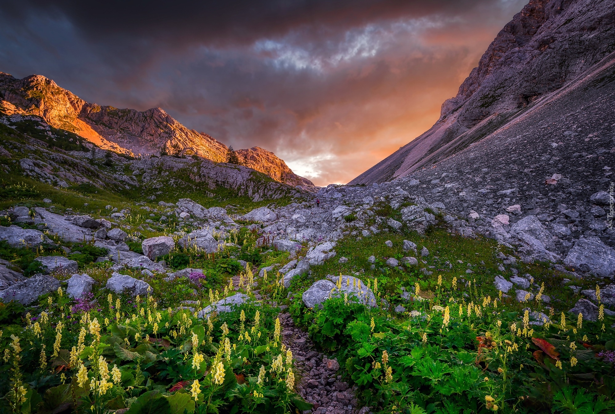 Edytor tapety: Górska łąka w promieniach słońca