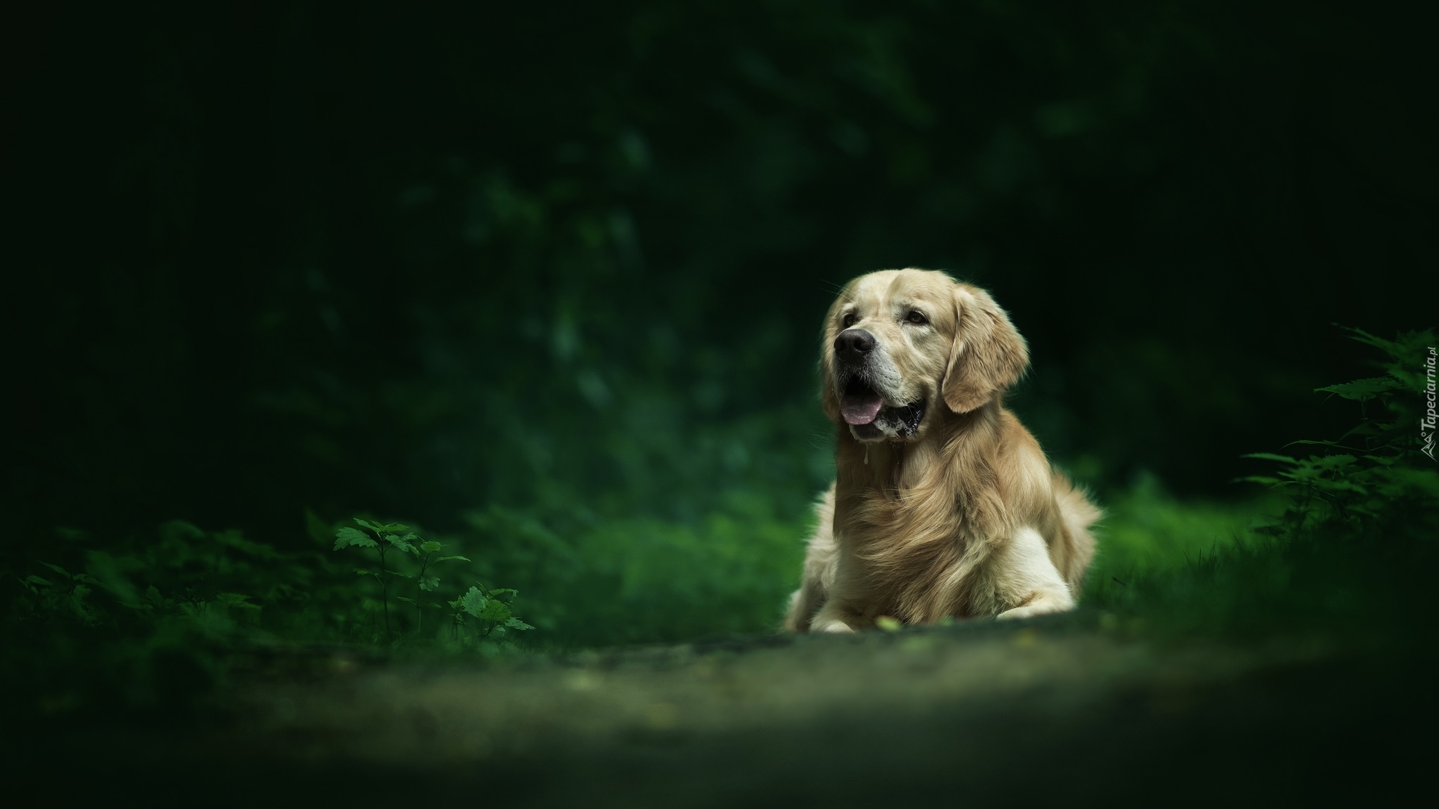 Edytor tapety: Golden retriever pośród zieleni