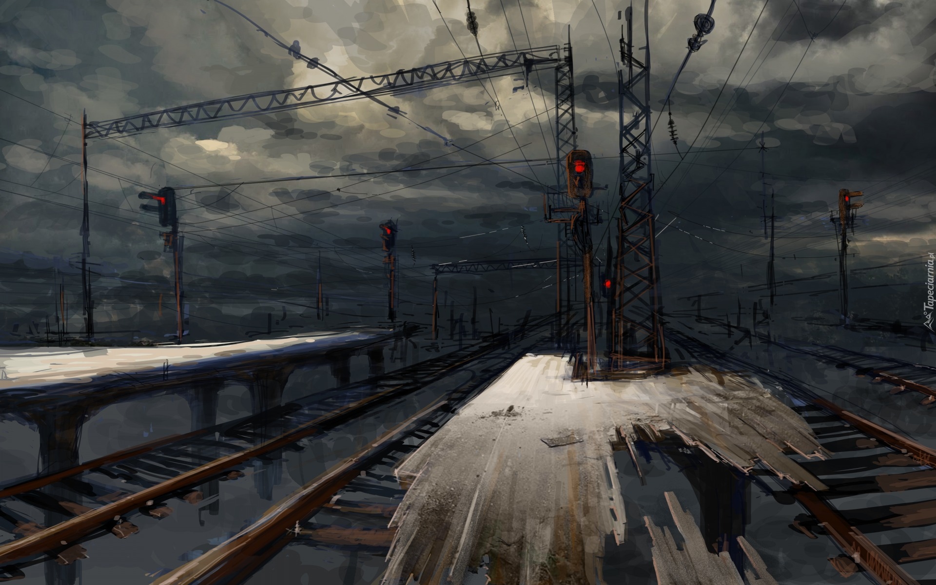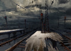 Edytor tapety: Zniszczone tory kolejowe w grafice paintography