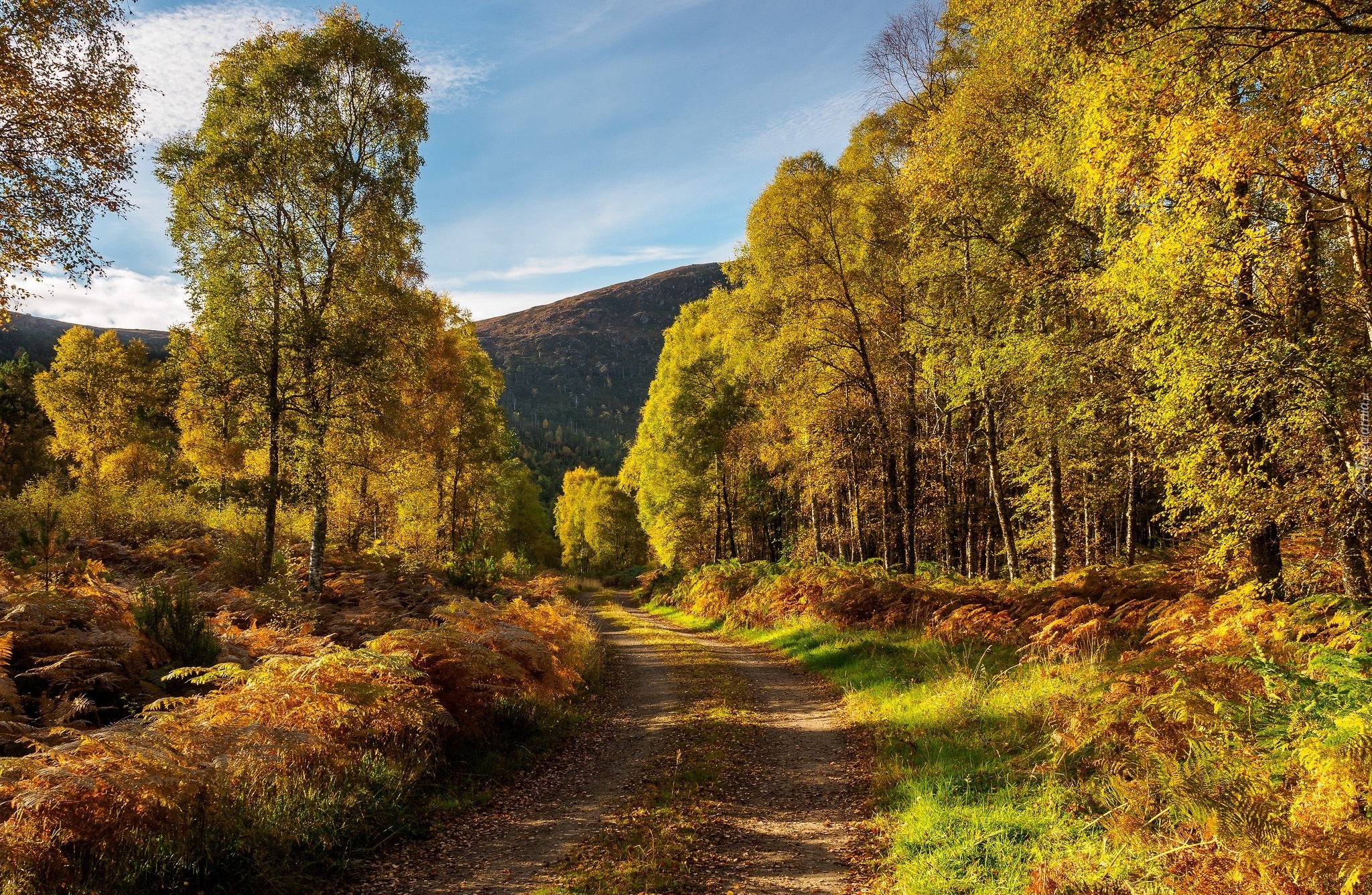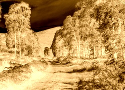 Edytor tapety: Leśna droga prowadząca ku wzgórzu