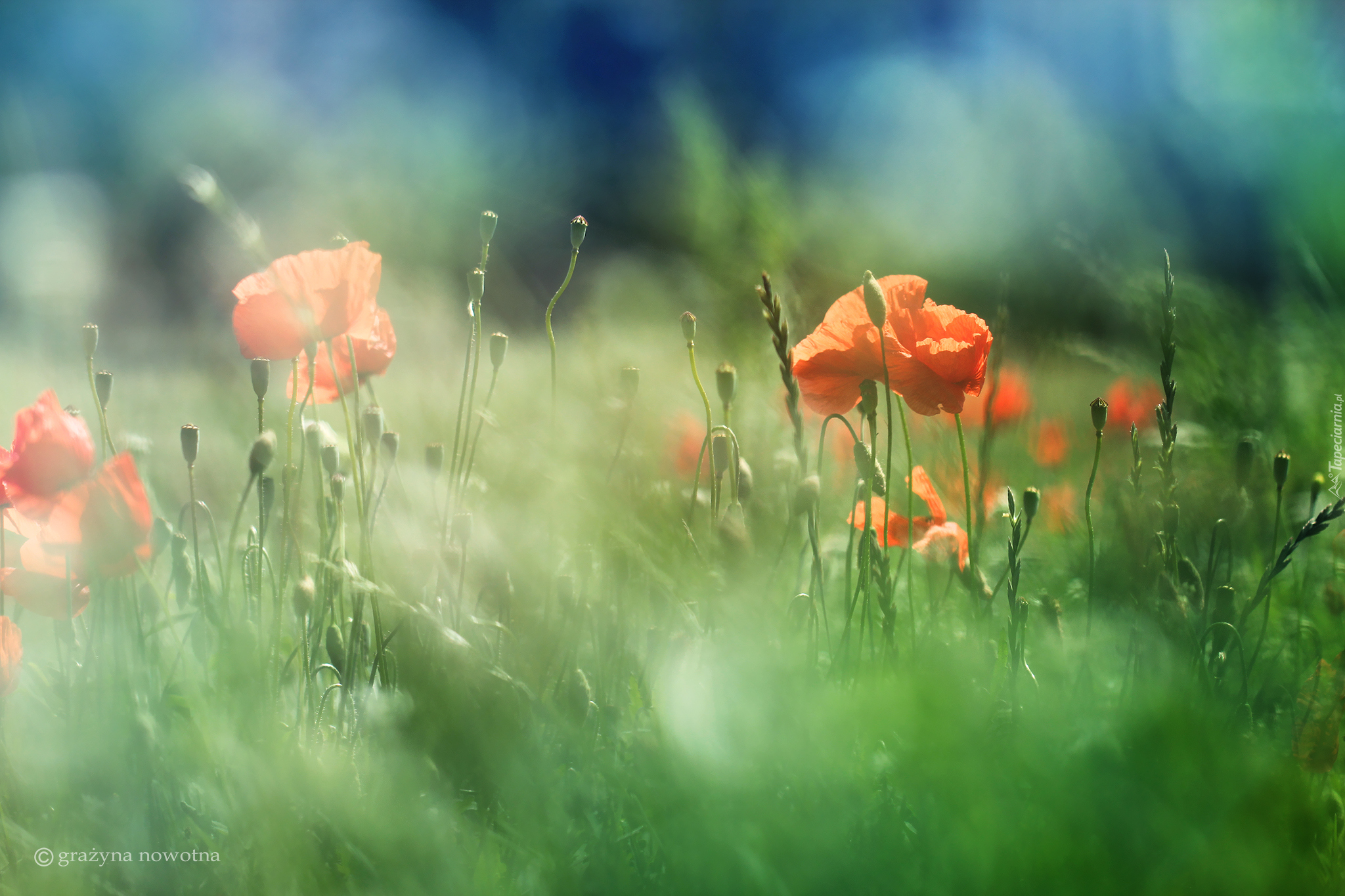 Edytor tapety: Letnie maki w rozmyciu