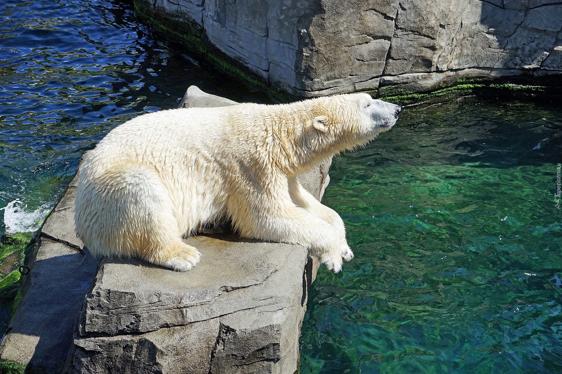 Edytor tapety: Niedźwiedź polarny wyleguje się na skale nad wodą