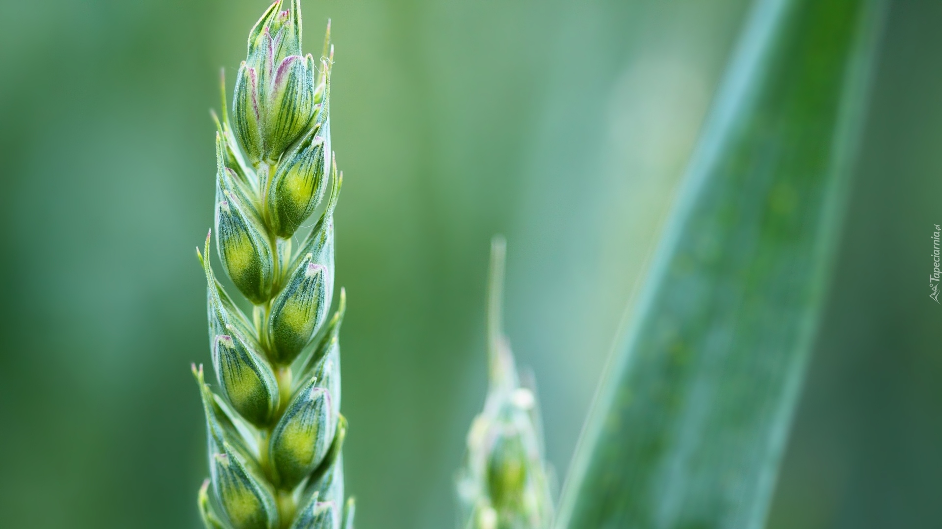 Edytor tapety: Zielony kłos zboża z bliska