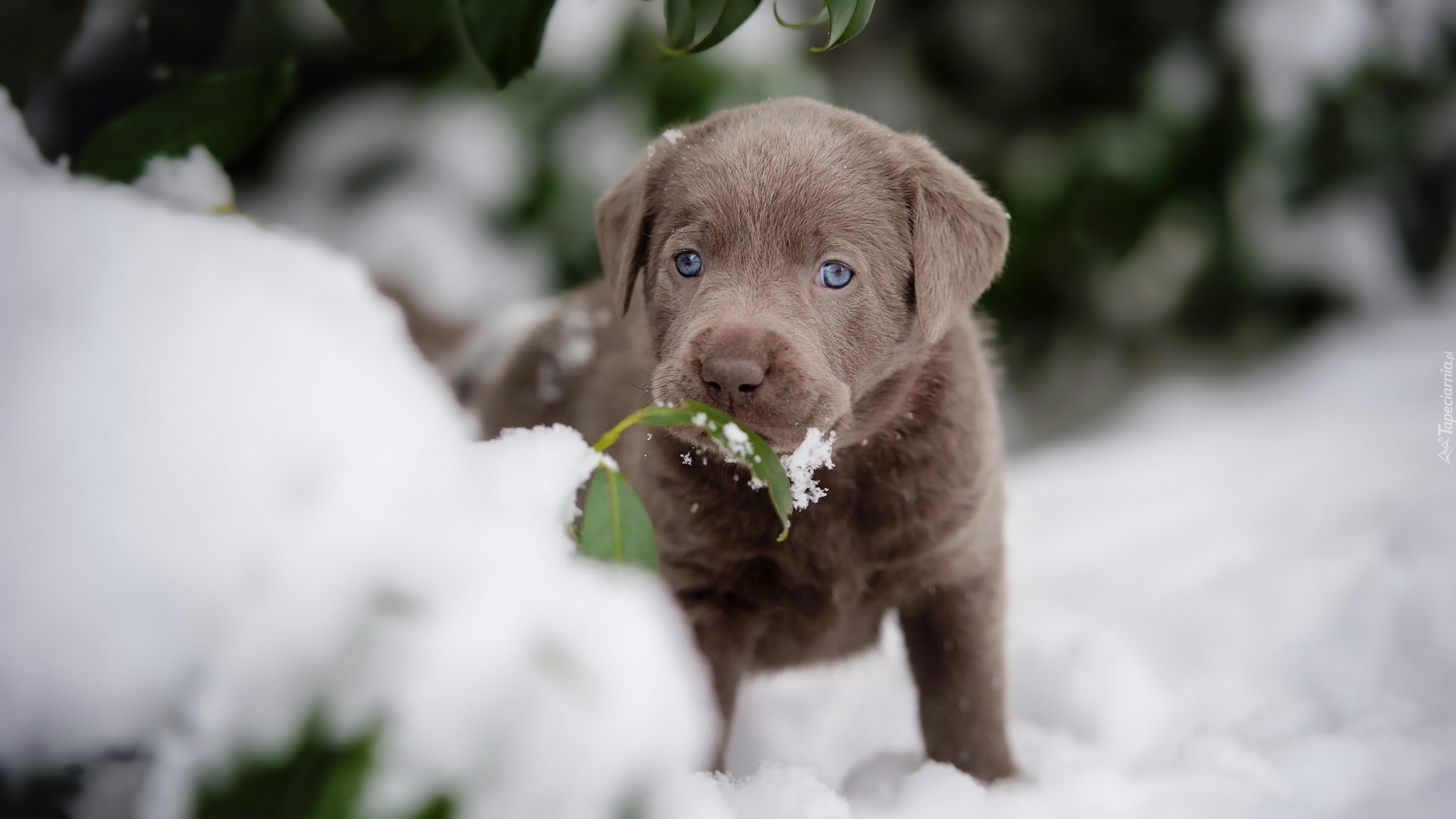 Edytor tapety: Szczeniak labradora retrievera na śniegu